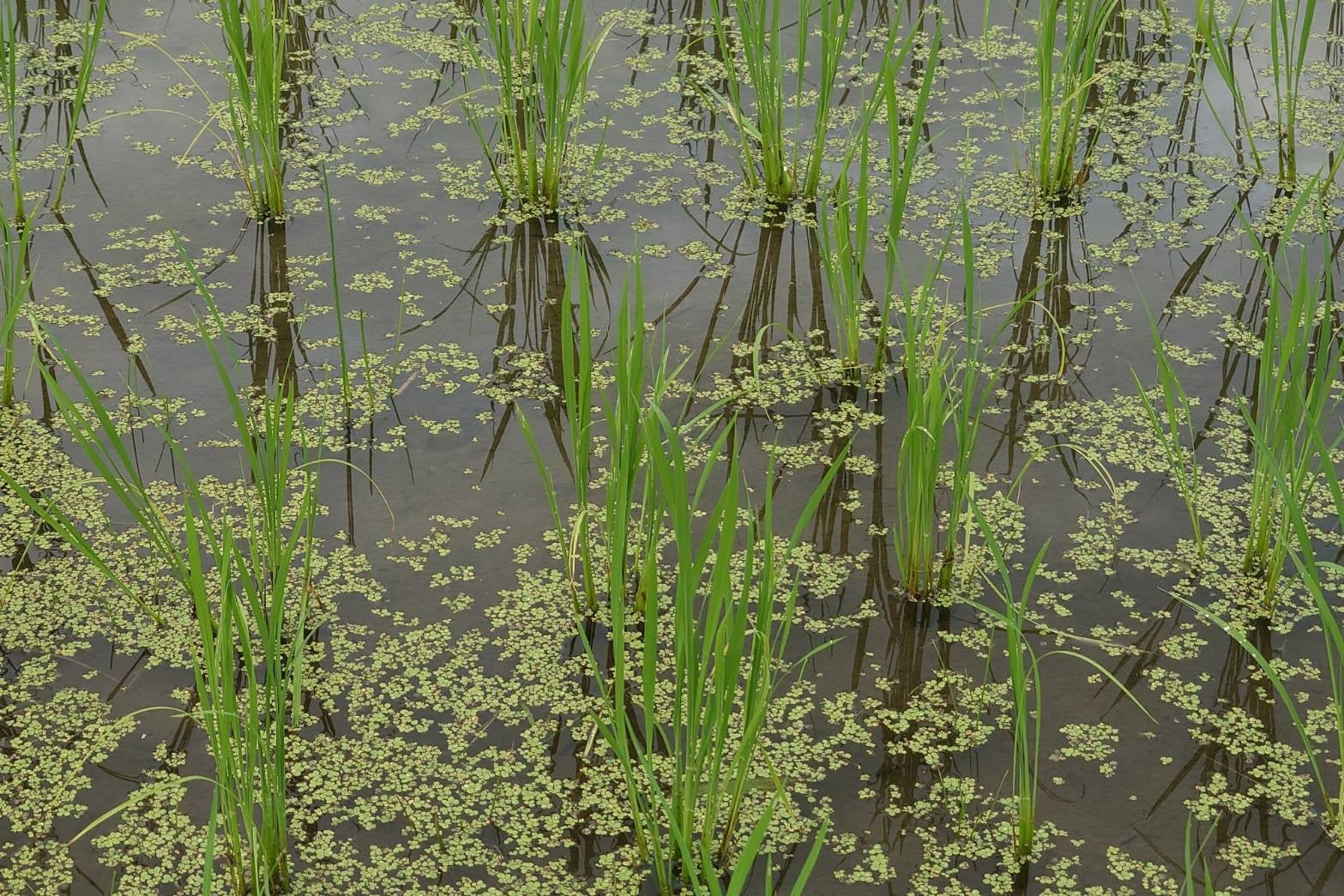 水面に浮く水草はありましたが、田面から生える雑草は部分的にみられる程度で、攪拌により一定の効果がありました。