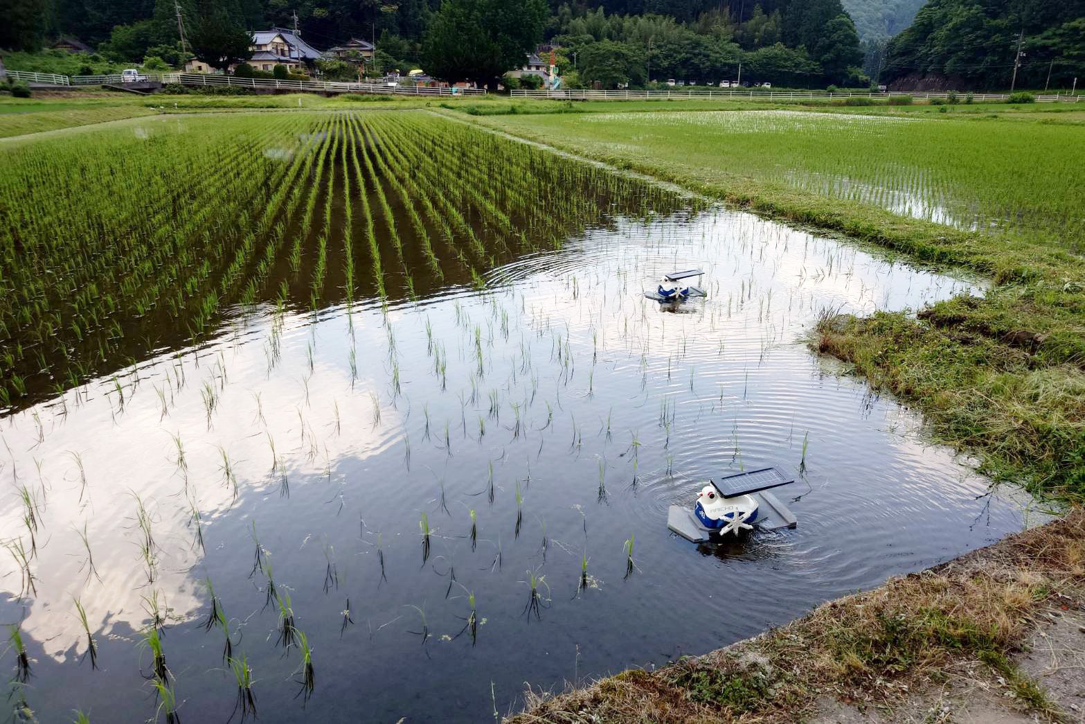 複数のロボットを同時に動かす、群ロボット制御によって、田んぼ上のすべての面を撹拌できる