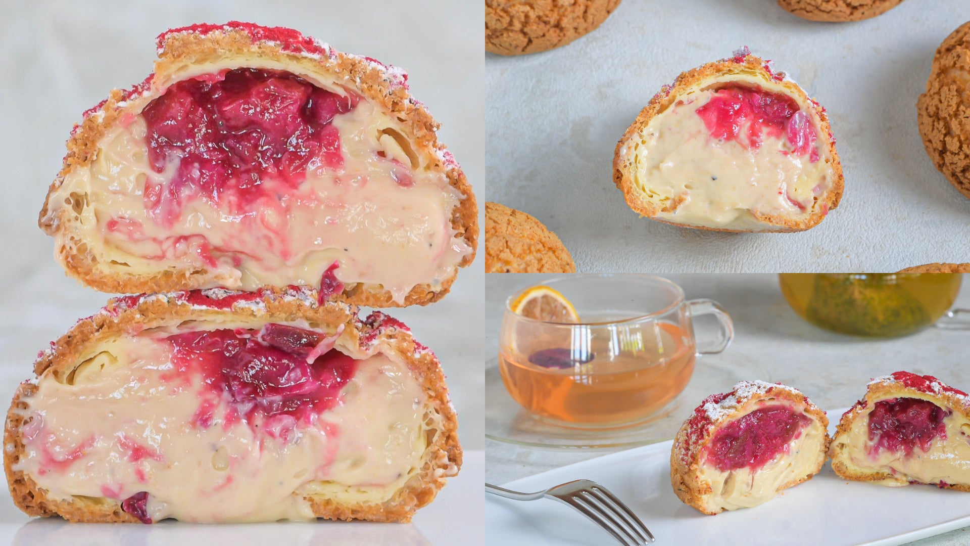 トンカ豆のコクのあるカスタードクリームにバラジャムをたっぷりと