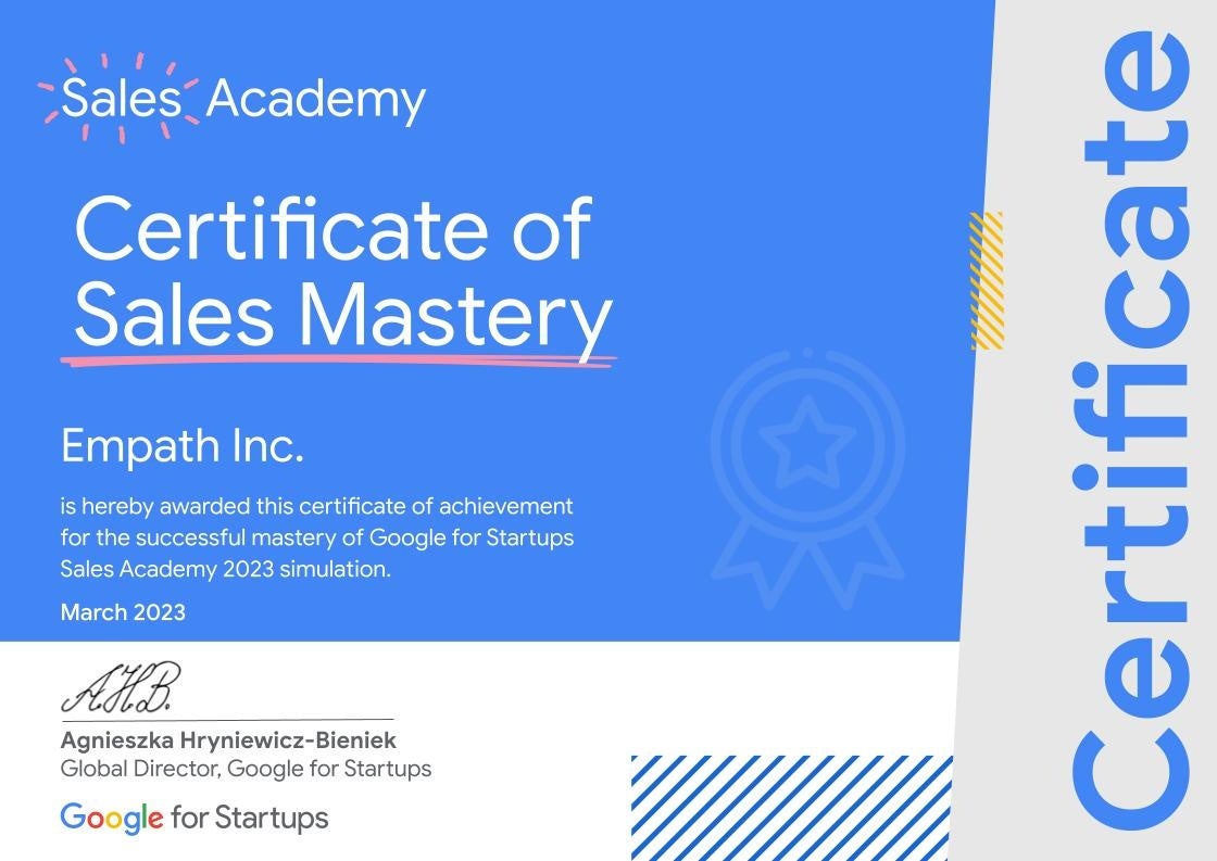Empathが Google for Startups からセールス・マスタリーの認定を取得