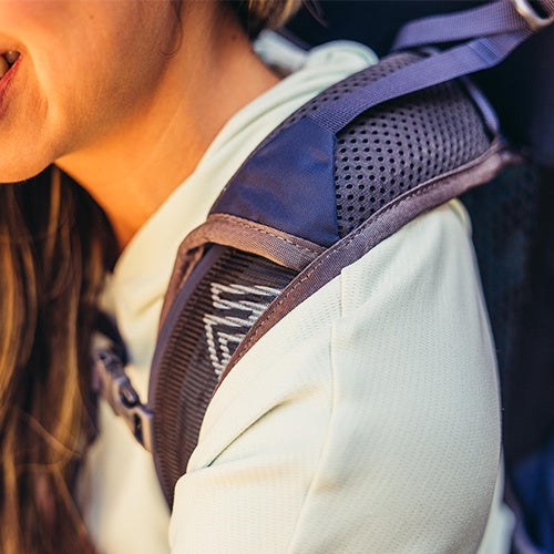 体の形状にフィットするよう設計された、サポート力ある背面のメッシュバックパネルと一体型のヒップベルトによって、パックの荷重を均等に分散します。フィット感と通気性それぞれの実現により、安定した快適なトレイル体験を可能にします。