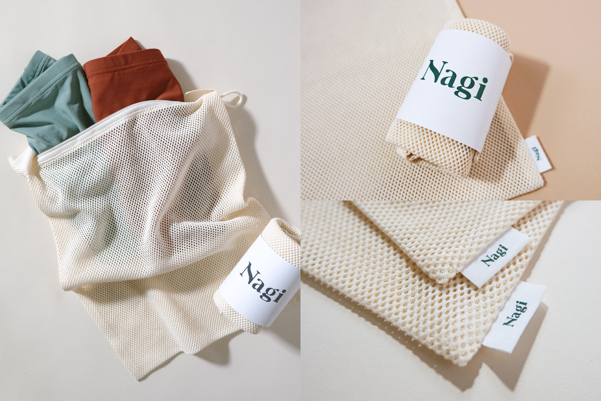 ノベルティには、Nagiオリジナルのオーガニックコットン製洗濯ネットをご用意しました。Nagiのショーツのお手入れにご活用いただけたら幸いです。