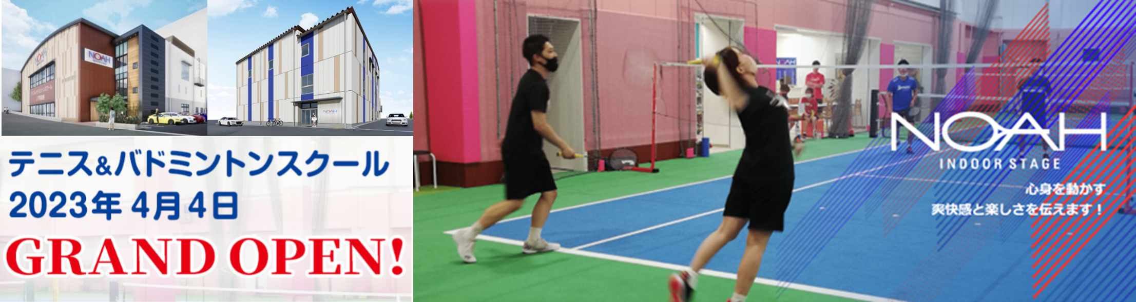 インドアテニススクールを全国に展開する業界大手のノアインドアステージ株式会社(代表取締役社長:大西雅之、本社:姫路市東山524)は、2023年4月4日(火)大阪にテニス&バドミントンスクールを2校同時オープンします。世界大会で多くの選手が活躍し、パリ五輪でも注目されているバドミントンは小中学生の習い事として人気も高く、テニススクール・ノア大阪池田校、大阪阿波座校ではバドミントンスクールを開講します。