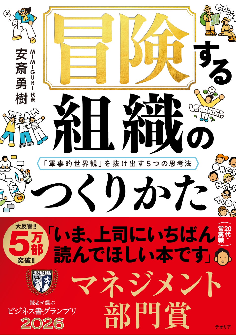 株式会社MIMIGURI(本社:東京都文京区、代表取締役Co-CEO:ミナベトモミ、安斎勇樹)は、当社代表取締役Co-CEO 安斎勇樹の著書『冒険する組織のつくりかた 「軍事的世界観」を抜け出す5つの思考法』が、ビジネスパーソンが今読むべき一冊を選ぶ「読者が選ぶビジネス書グランプリ2026」において、マネジメント部門第1位を受賞したことをお知らせいたします。