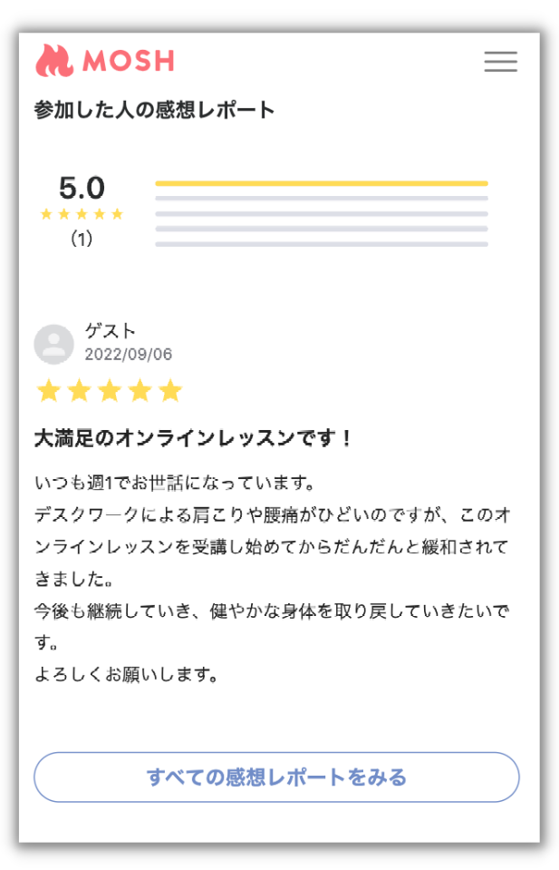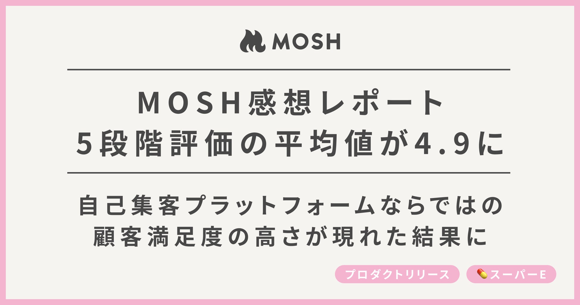 【93%が星5評価!】ネットでサービスが売れるMOSH、感想レポートの平均評価が4.90に。
