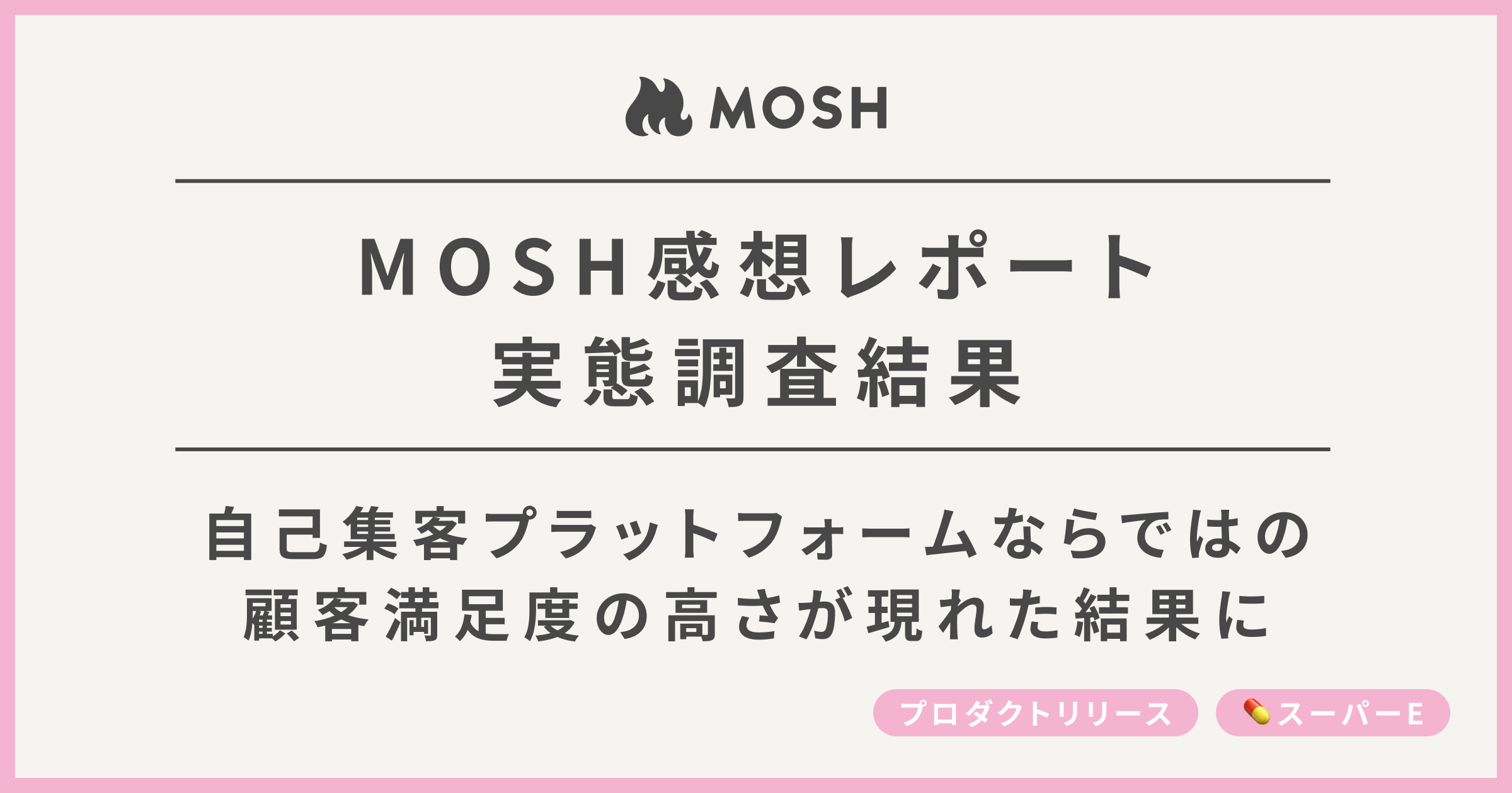 本調査を通して、MOSHで提供されているサービスの顧客満足度は非常に高く、自己集客型のプラットフォームならではの強みが現れた結果となりました。