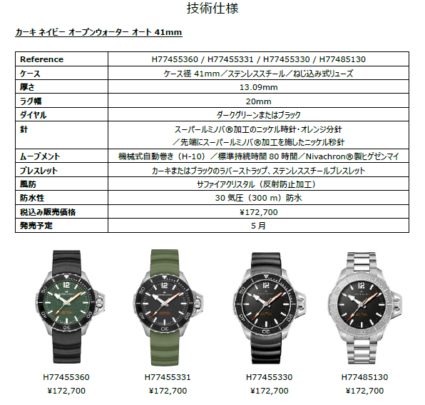 ハミルトンの「カーキ ネイビー オープンウォーター」に41mm径の新作が登場