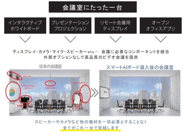 ューション様の協力のもと、オフィスでの会議に必要な機能を 1 台に備えた「スマート