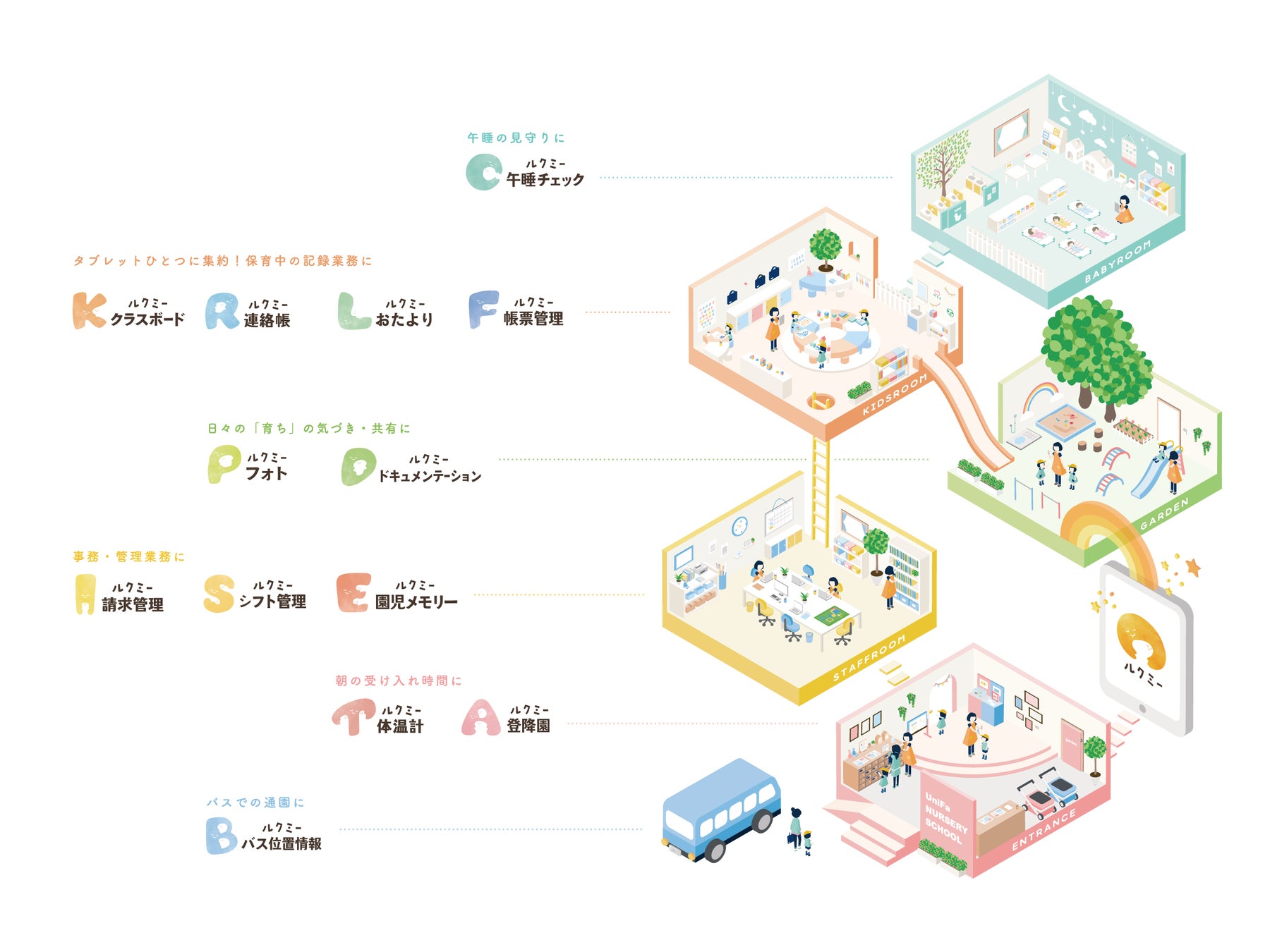 ・事業概要:保育支援サービス「ルクミー」シリーズの企画、開発、販売、運営。「スマート保育園・スマート幼稚園・スマートこども園」の展開、推進。