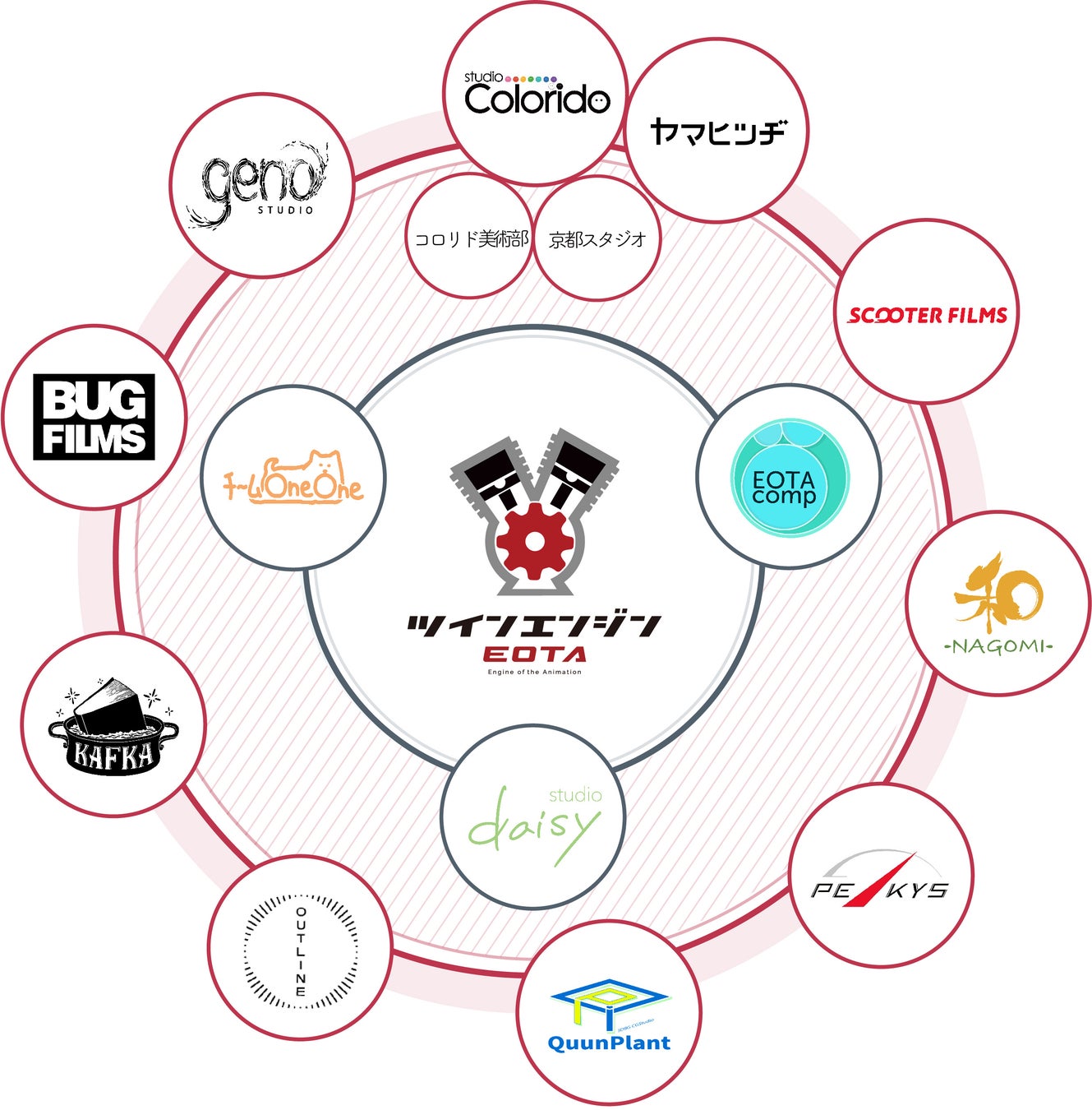 フジテレビ「ノイタミナ」を長年率いた山本幸治が2014年に設立。アニメーション企画の立案、オリジナルIPの開発、宣伝戦略やビジネススキームの構築を行っています。また、「スタジオコロリド」や「ジェノスタジオ」、「スタジオカフカ」をはじめとした計15のスタジオがグループに所属しており、世界に向けたアニメビジネスの全工程を自社グループで担っています。