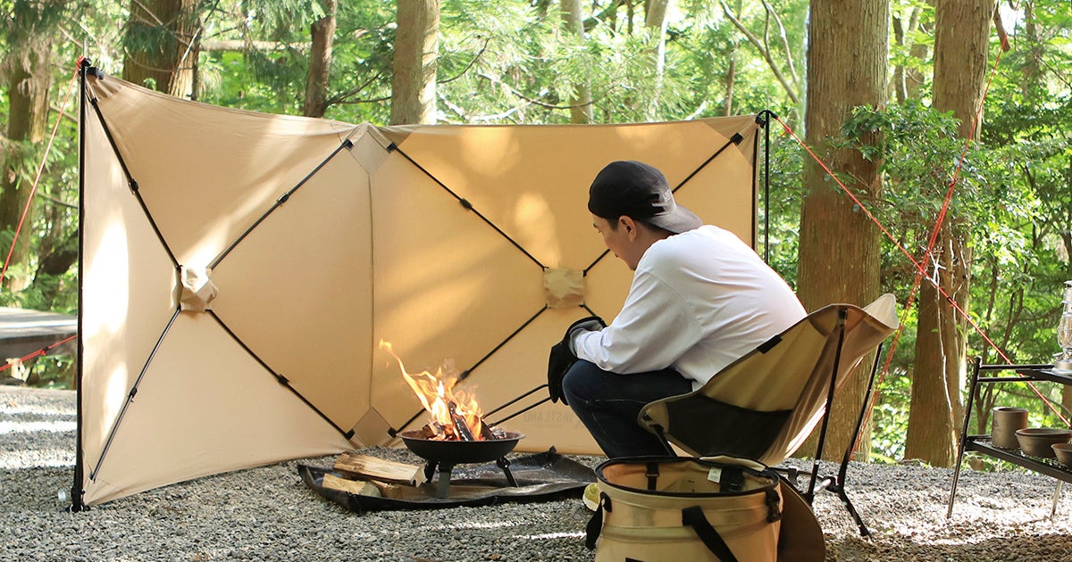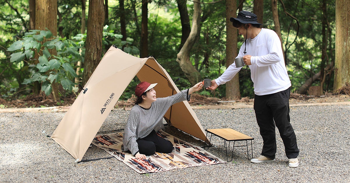 キャンプギアブランド「VASTLAND」、TC(ポリコットン)混紡素材を使用し、ウィンドスクリーンや簡易のサンシェードとして使える「TCポップアップシールド」を2023/9/2(土)に発売