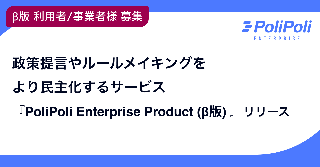 株式会社PoliPoli(所在地:東京都千代田区、代表取締役:伊藤和真、以下 PoliPoli)は、『PoliPoli Enterprise Product (β版) 』の提供を開始し、そのテスター募集を開始したことをお知らせいたします。