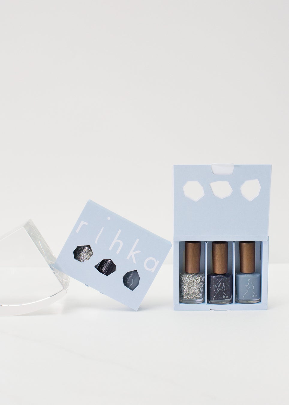 ネイルコレクション「bleu」全3色をまとめた数量限定セット。氷からインスピレーシンを受けた、涼しげなデザインの限定パッケージでお届けします。