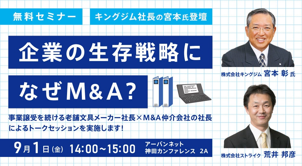 キングジム宮本社長登壇『企業の生存戦略になぜM&A?』セミナー開催のお知らせ
