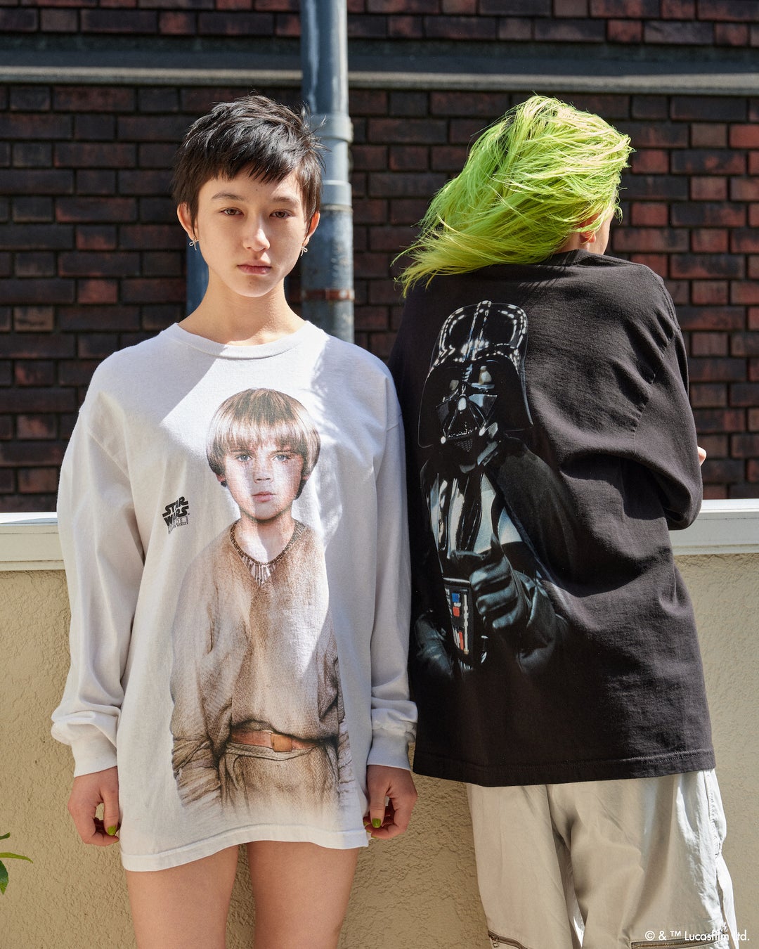 Tシャツは、アナキン・スカイウォーカー、クワイ=ガン・ジン、オビ=ワン・ケノービや、ダースモール、パドメ・アミダラなど、『スター・ウォーズ エピソード1/ ファントム・メナス』の主要キャラクターにフォーカスしたデザインで、公開当時のアドバタイジングのムードを感じることができるコレクションとなっています。