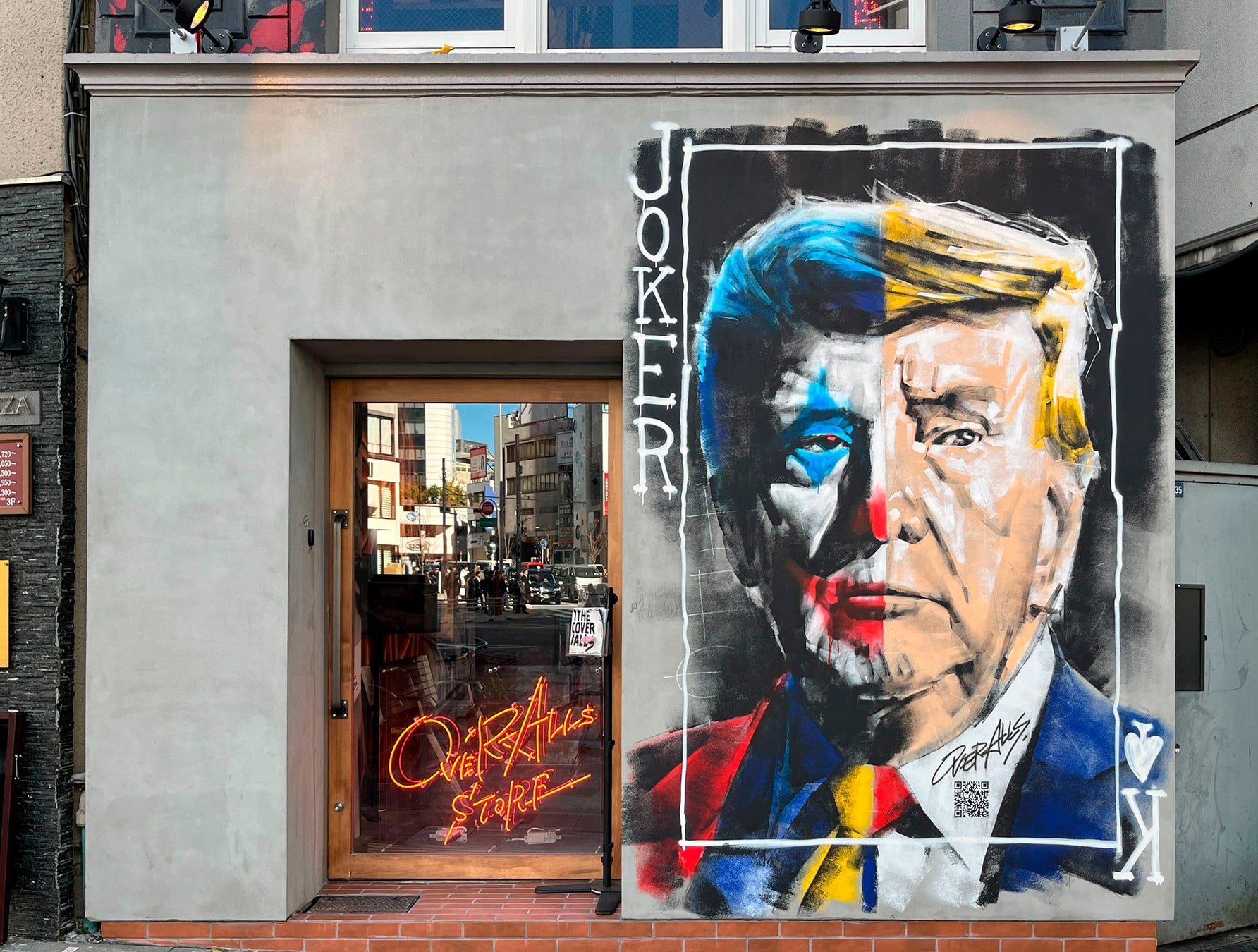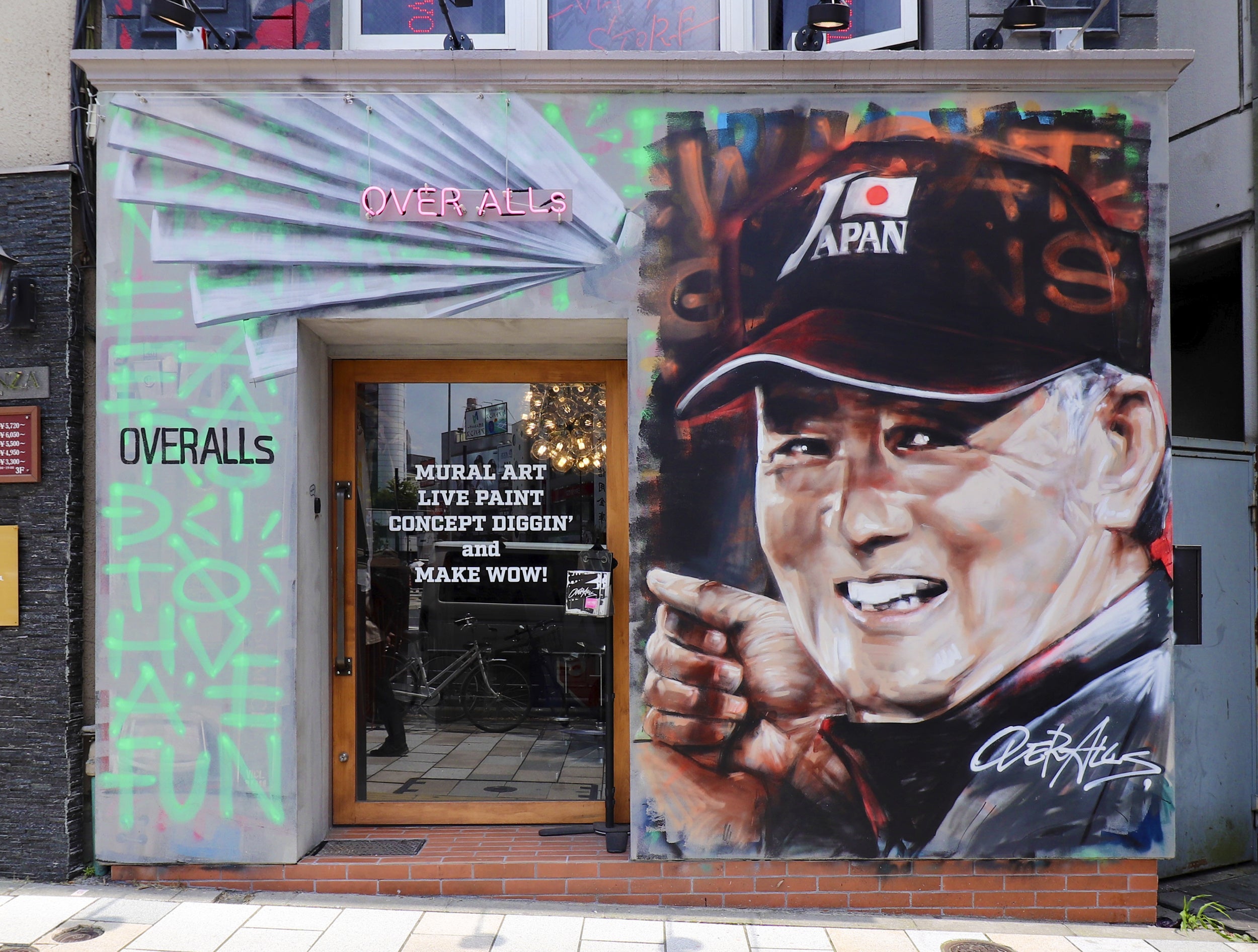 外苑前交差点の真ん中に位置するOVER ALLs本社ビル。そのビルの青山通りに面した壁面にミューラル(壁画)専用の壁を制作。報道として毎月話題の人物やトピックをモチーフとしたミューラル(壁画)を描き重ねていく。NYのTimes Squareのように壁面がメディアとなるイメージからトーキョーミューラルスクエア(TOKYO Mural Square)と名付けた。
