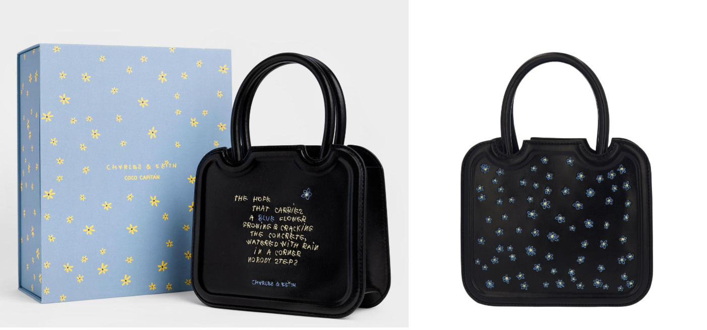 チャールズ&キースのデザインディレクターであるFredie Stevens(フレディー・スティーブンス)は、「チャールズ&キースは、世界的に活躍するアーティストとともに創造性を広げ、アートワークをフィーチャーしたユニークな限定アイテムを制作するという新しい試みにとてもわくわくしています。私達はキャピタンと密接に協力して、彼女の”cool-girl attitude”(クールな少女の姿勢)を反映したカプセルコレクションを作りました。これらの作品は、彼女の詩的な文章と相まって、アートやファッションを愛する人にとってパーフェクトなコレクターズアイテムとなるでしょう。」とコメントしています。