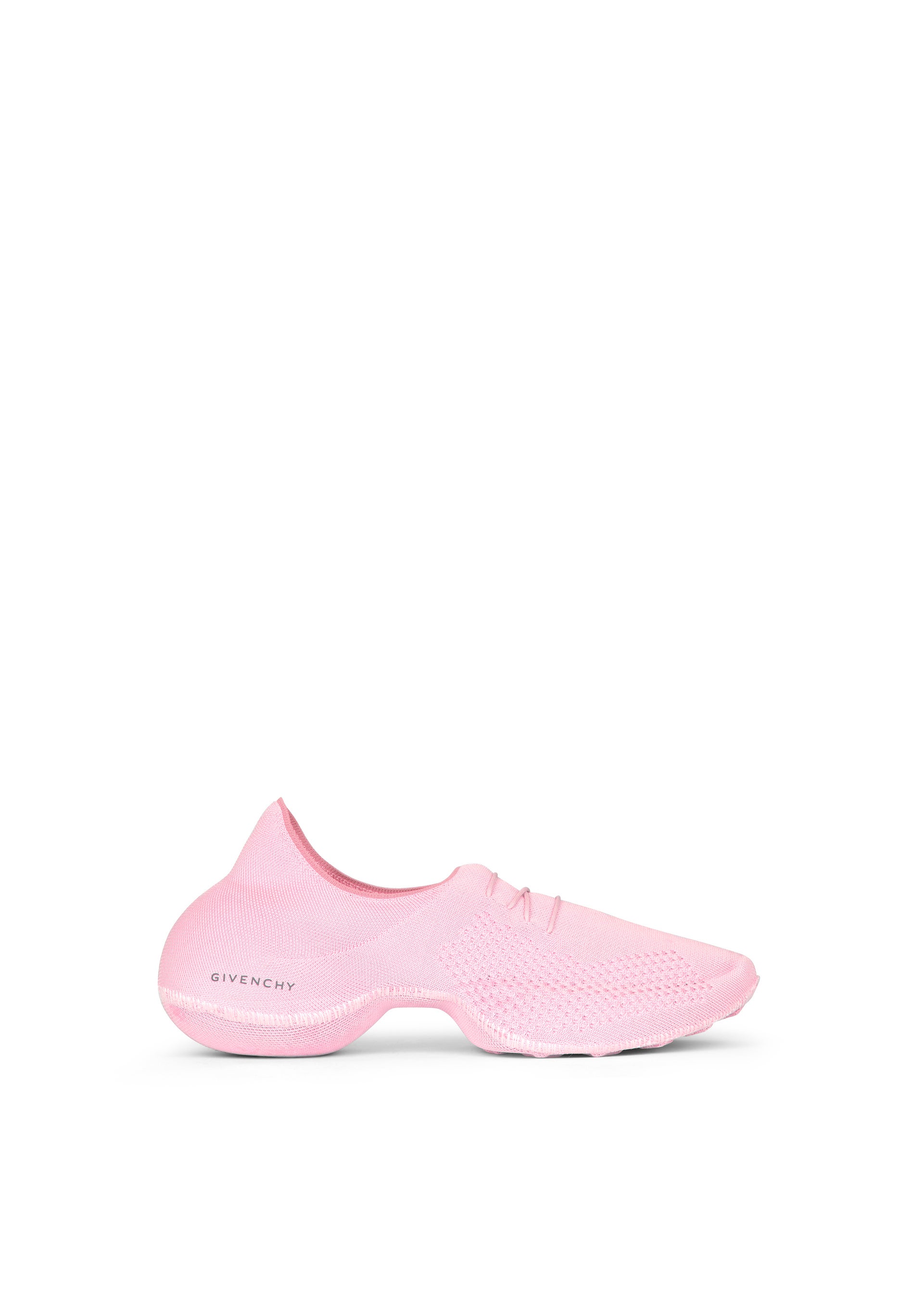 TK-360が革命的であると言える理由はその一体構造。卓越した技術と型破りなフォルムとが融合し、見た目の魅力と履き心地の良さが両立します。特別仕様の成型技術によって実現する大胆なシルエットは、クラシックなストレッチニット製アッパーとソールとの完全な一体化を特徴とし、ニットで直接地面を踏みしめることを可能にします。また、タイヤをイメージしたシングルトレッドのモチーフがその足跡を特別なものにする一方で、さりげない遊び心のあるテクスチャとコントラストカラーで綴るGIVENCHYの文字デザインが斬新なスタイルを完成させます。