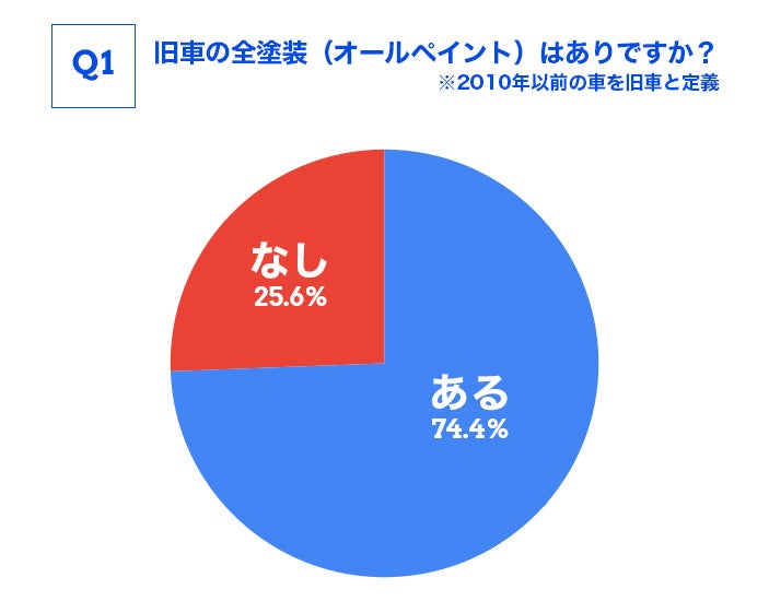 旧車の全塗装(オールペイント)はありかという質問に対し、74.4%の方がありと回答しました。