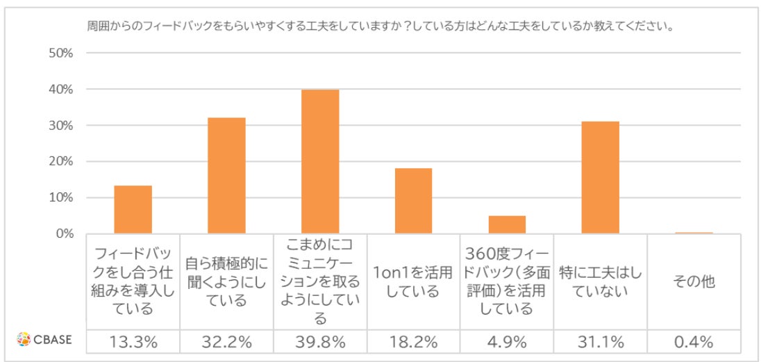 設問:周囲からのフィードバックをもらいやすくする工夫をしていますか?している方はどんな工夫をしているか教えてください。