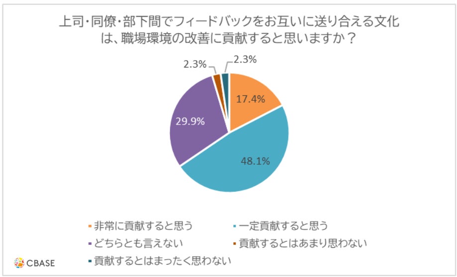 設問:上司・同僚・部下間でフィードバックをお互いに送り合える文化は、職場環境の改善に貢献すると思いますか?
