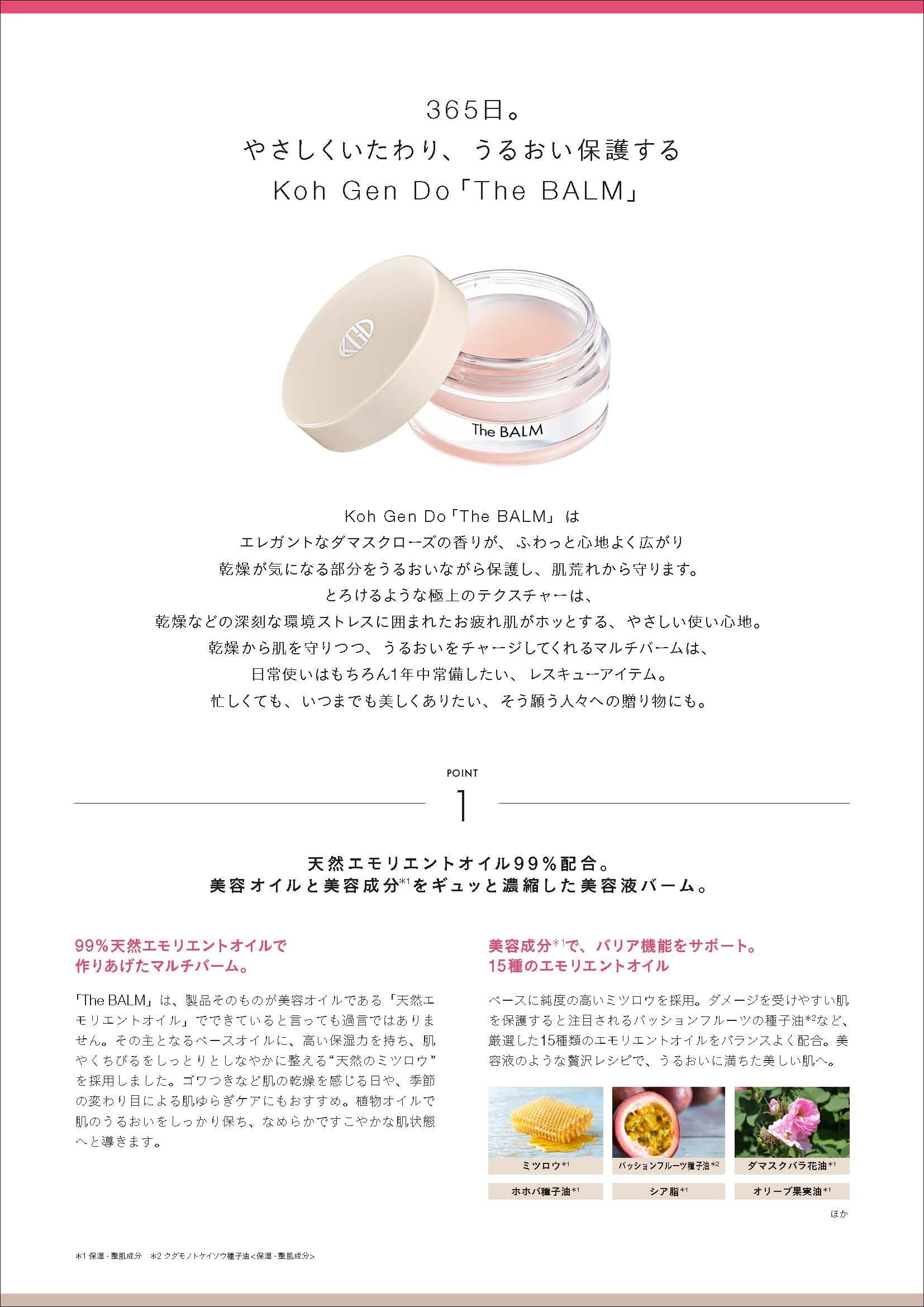 【Koh Gen Do2023 スキンケア】天然エモリエントオイル99%を凝縮。ベトつかず、さらっとしているのに高保湿な 数量限定「The BALM」を2023年11月25日(土)より発売!