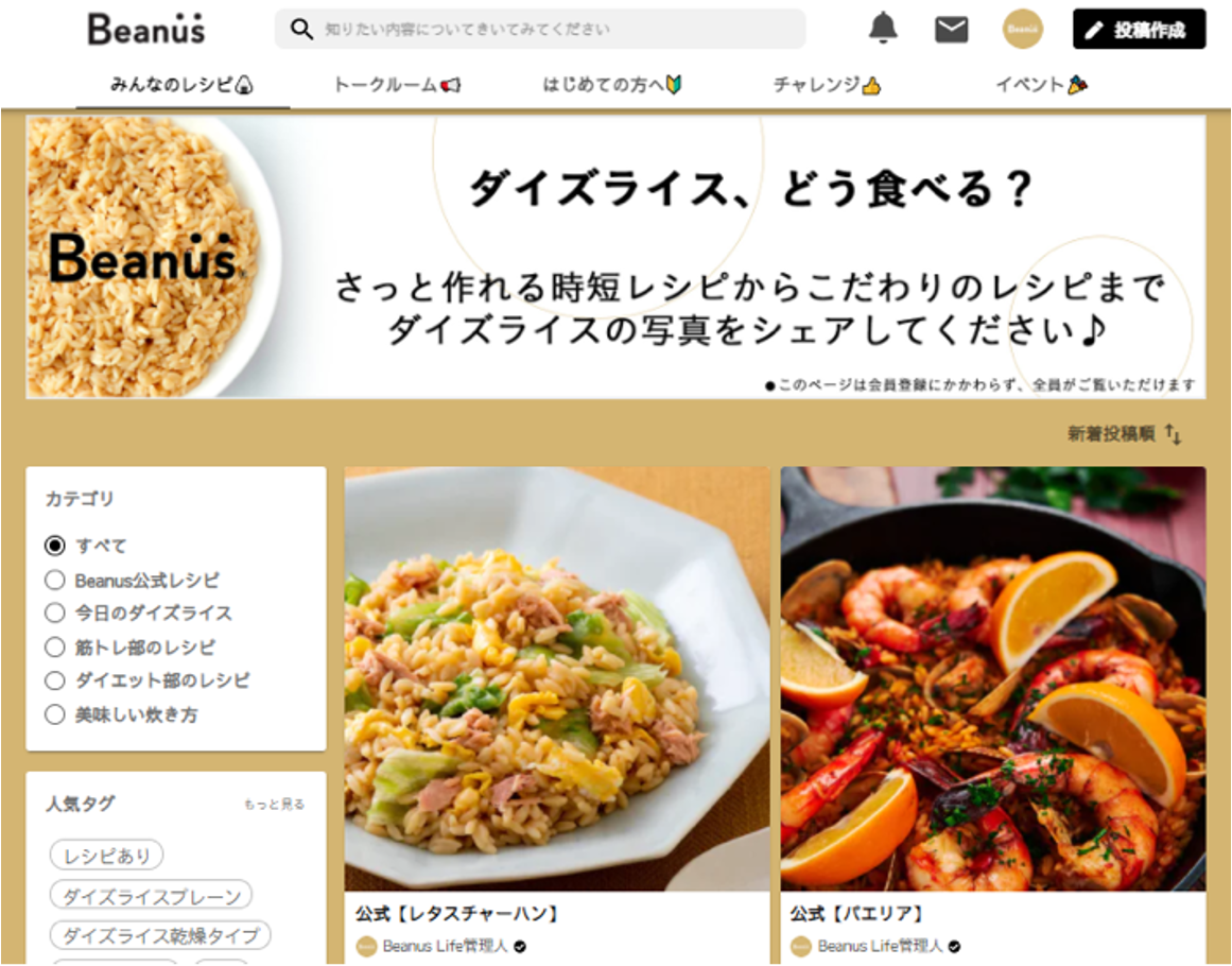 フジッコ、「ダイズライス」を販売する食品ブランド「Beanus」のコミュニティ開設に「commmune」を導入