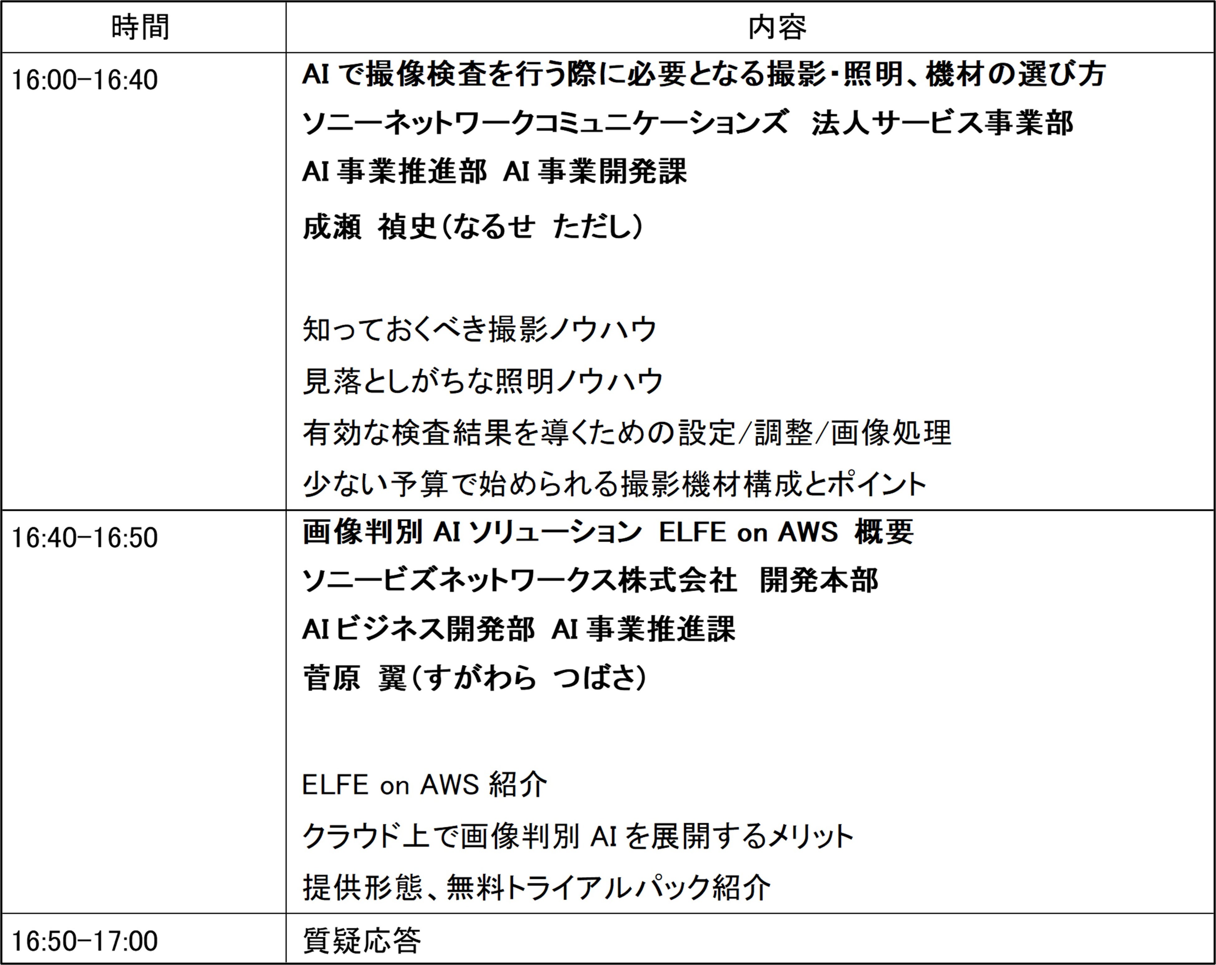 法人向けソリューションサービスを展開するソニービズネットワークスが製造管理・生産管理に携わる方向けAIセミナー開催 AI画像判別を試す前に知っておくべき撮影・照明ノウハウ ―ELFE on AWS―