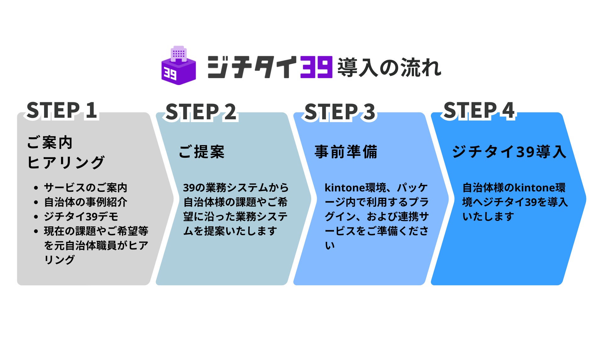 「ジチタイ39」は、地方自治体のデジタルトランスフォーメーション(DX)を支援するために開発されたkintoneを基盤としたパッケージシステムです。本システムは以下の特徴を持ちます。