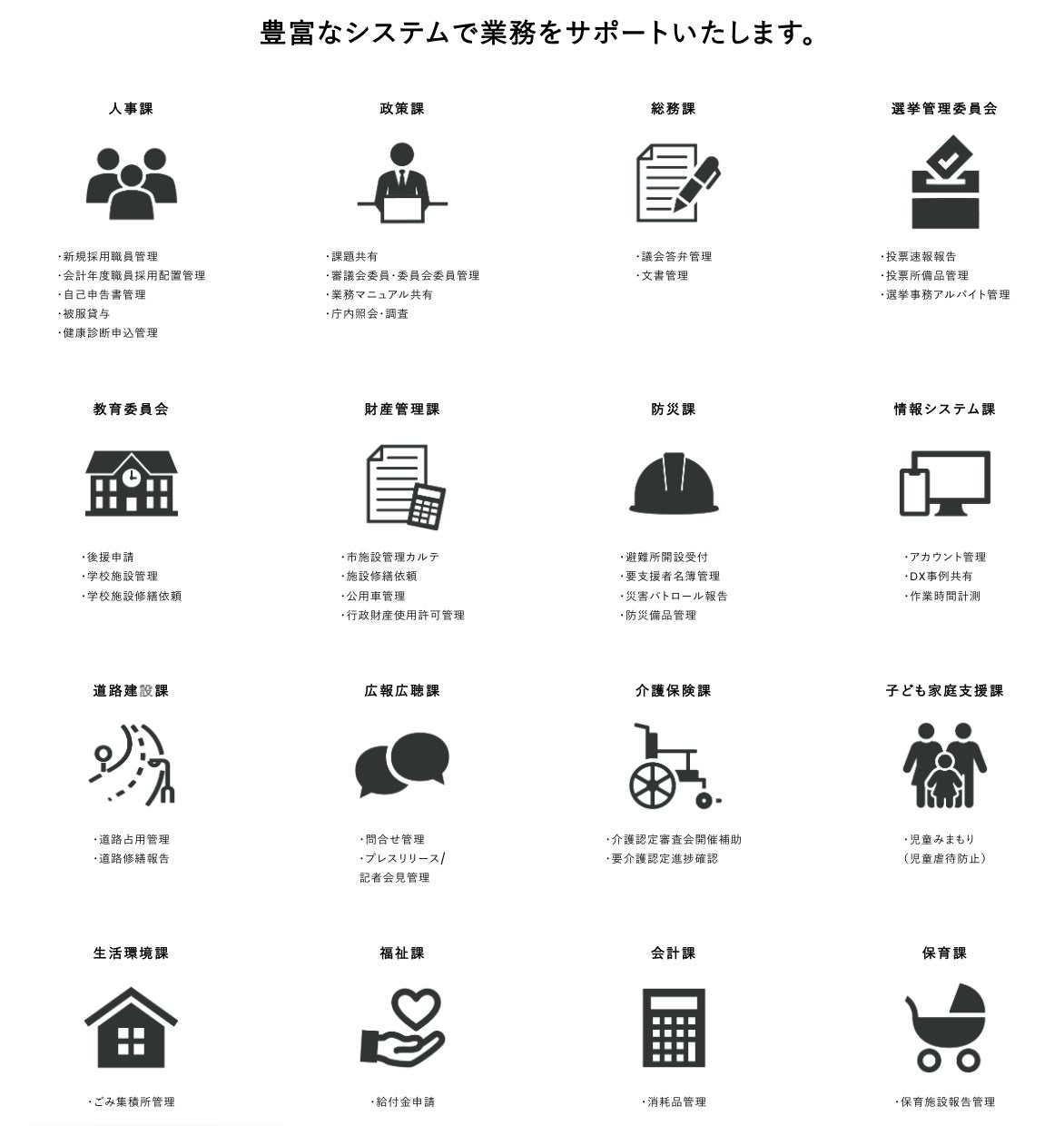 地方自治体ごとのニーズに応じたカスタマイズが可能で、業務効率を大幅に向上させます。