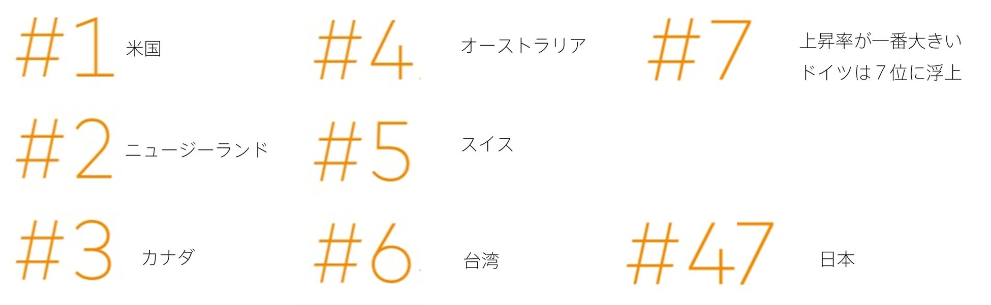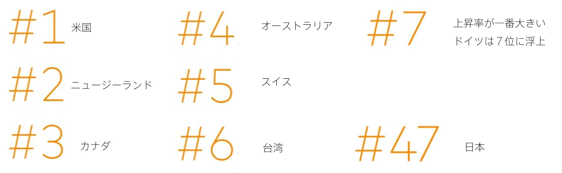 MIWE 2021グローバルランキングにおいて、65の経済圏のうち、日本は47位となりました。なお、58の経済圏を対象とした前年の同ランキングでも、日本は同順位となる47位を記録しています。