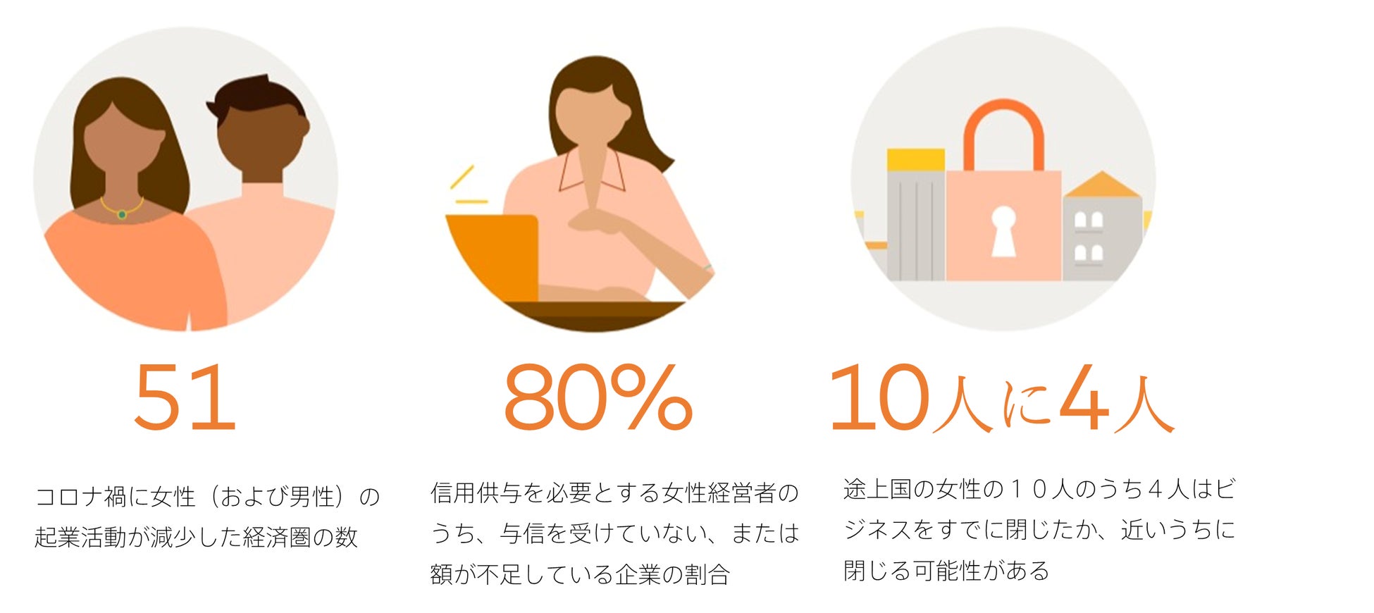 新型コロナウイルス感染症の大流行が世界中の女性起業家、特に発展途上国の起業家に大きな影響を与えているのにも関わらず、Mastercardの最近の調査によると、女性は困難に打ち勝ち、成功するレジリエンス(回復力)を持っていることが明らかになりました。例えば、東南アジアの女性は社会・文化・インフラにおける障壁があるにもかかわらず、起業家として特に優れた成果を上げています。一方日本は、女性起業家が世界的感染症の大流行による影響を受けている世界経済の回復に貢献しているにも関わらず、女性がビジネスリーダー、専門家、技術者として専門的に昇進する割合が世界の他の国々に比べて少なく、高所得経済圏の中でも遅れをとっています。アジアの低中所得国で女性の起業を促進する上で大きな制約となっているのは、依然として政府による中小企業支援の不足、起業資金へのアクセスの悪さ、教育機会の深刻な不足です。