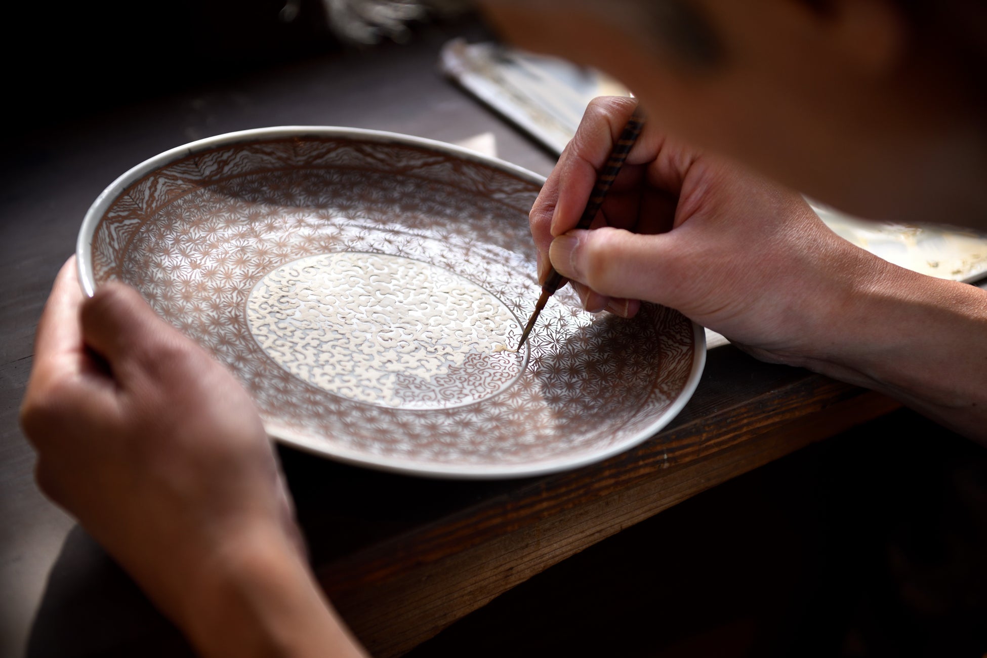 また、山中漆器の特徴は、自然の木目と優雅な蒔絵(まきえ)の美しさです。山中漆器には、加工した天然木に漆を塗って仕上げる伝統的な「木製漆器」と、プラスチック素地にウレタン塗装をした「近代漆器」があります。