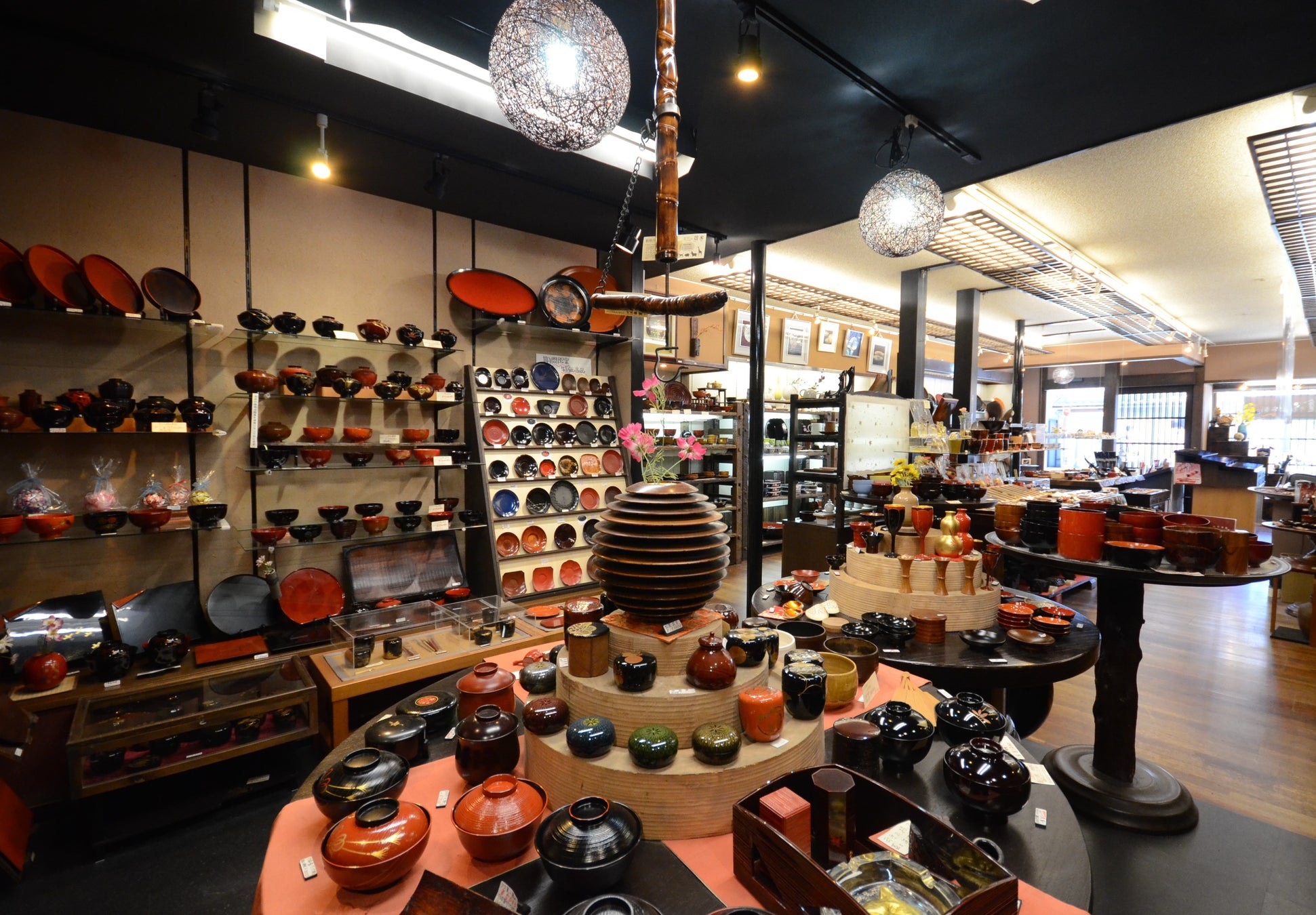 明治41年(1908年)創業、我戸幹男商店初の直営店。木地師が挽き上げた木目を重んじ、豪快に残すのが特徴。代々受け継いできた伝統的な山中漆器の高い技術を活かした実用性、和の美意識に基づいた高い芸術性を追求し、長く愛される漆器作りを心掛けています。店内では卓越した技術に裏打ちされたこだわりの商品を見ることができます。