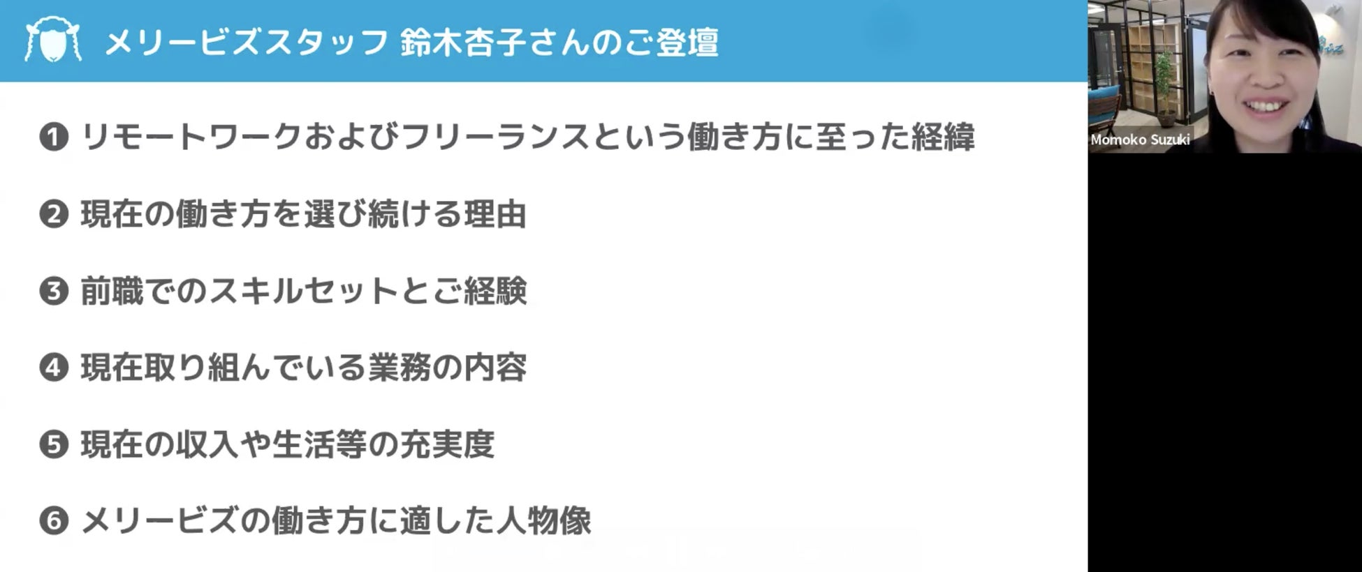 メリービズ株式会社 リモートスタッフ 鈴木 杏子(ゲスト登壇)