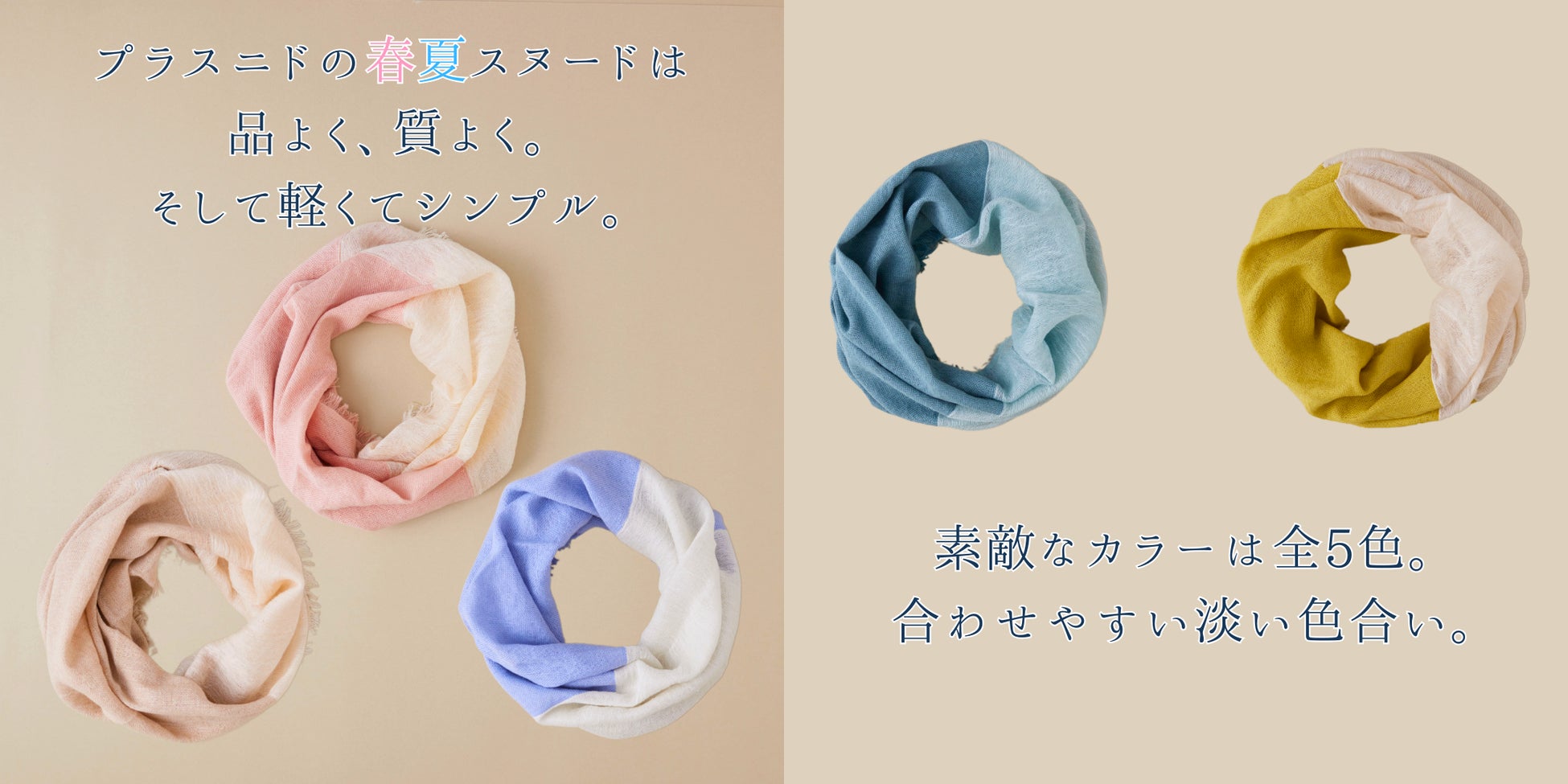 綿と麻が織りなす爽やかな肌さわり。春のファッションに彩り添える「あなたになじむ すてきなスヌード」が登場。