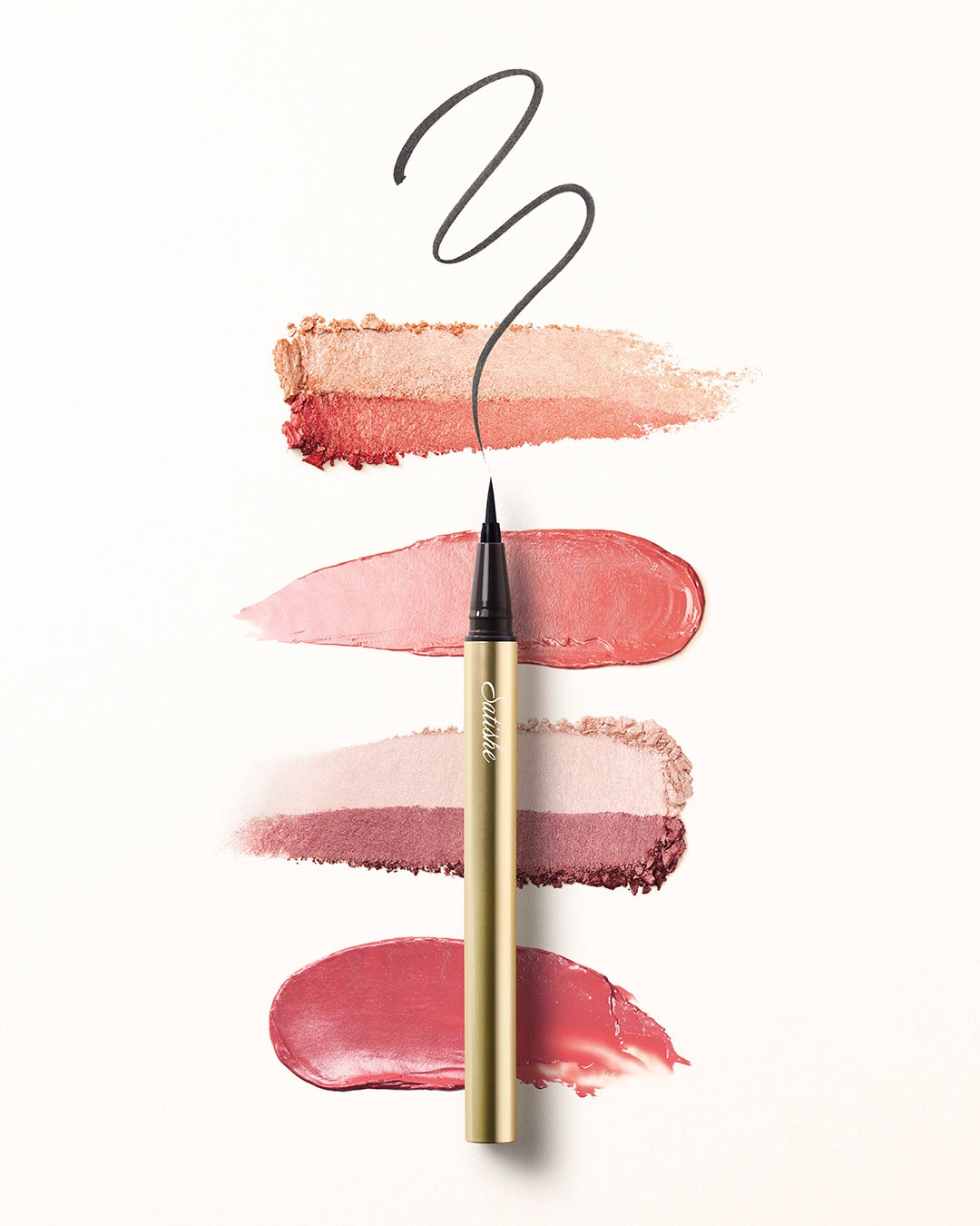 適度にコシのある筆先で細くも太くも自在に描ける、直液ペンタイプの新アイライナーが登場します。デリケートな目もとをケアする処方で、美しい仕上がりが長時間持続します。