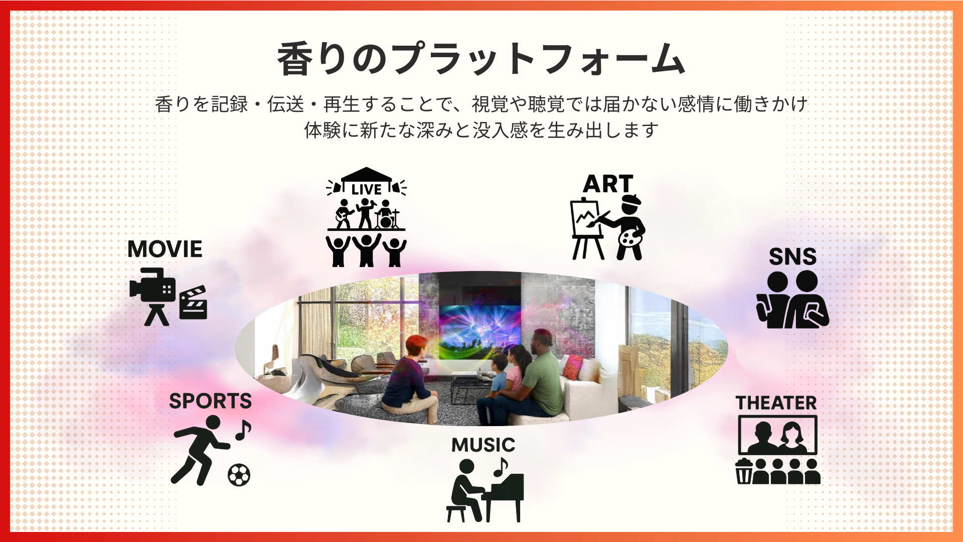 世界中の誰にとっても香りが楽しさや癒やしを生む存在になる、いわば、音楽や映像に匹敵する新たな文化の創出に挑戦します。