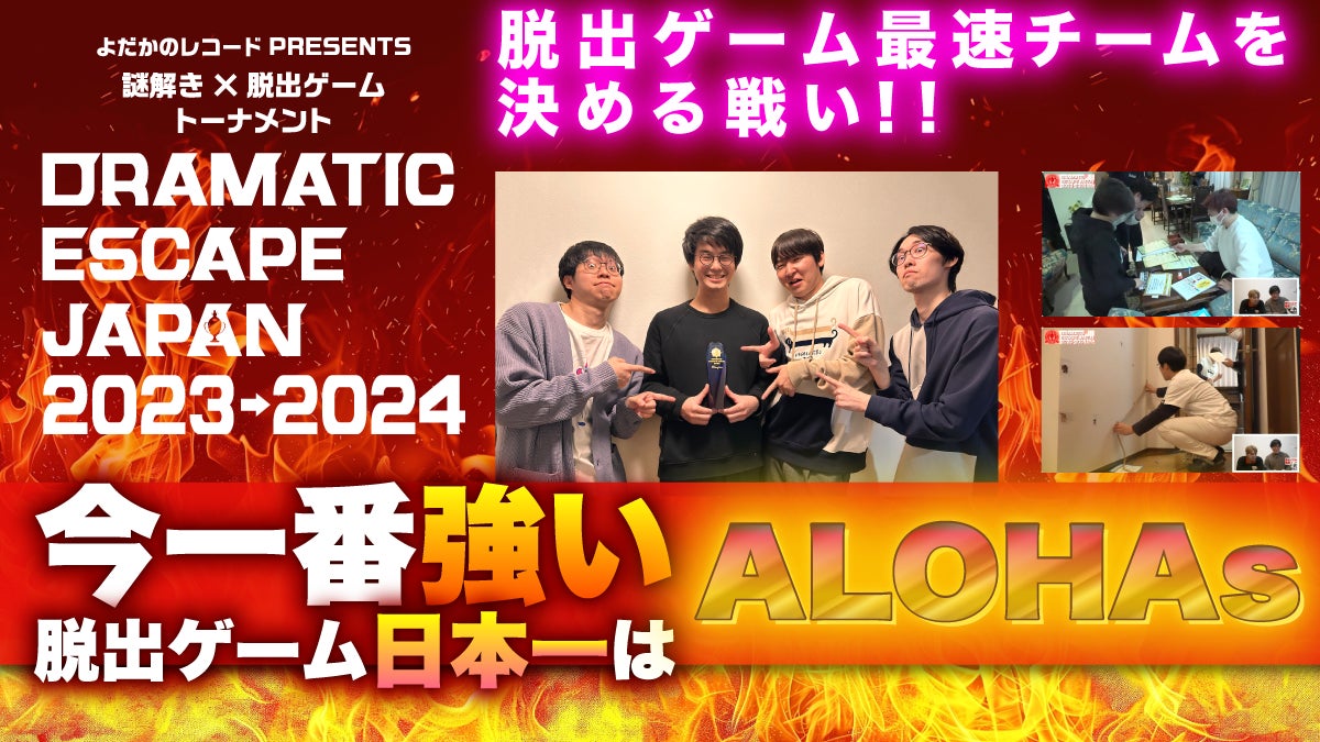 2023年から2024年にかけて開催された脱出ゲーム日本一決定戦『DRAMATIC ESCAPE JAPAN 2023-2024』において、見事優勝を飾ったのは「ALOHAs」チームでした!