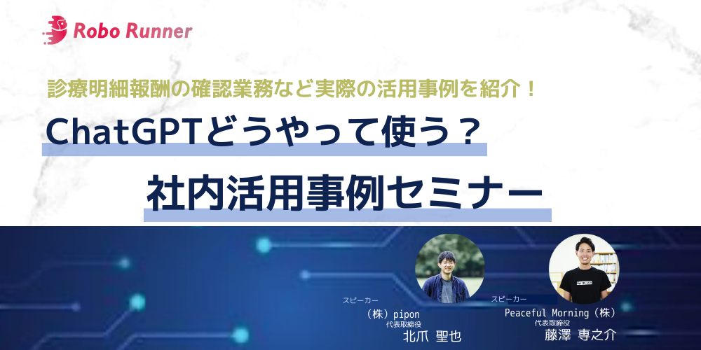 今回は、前回セミナー時にもっと活用事例を知りたいとの要望に応えて、事例の紹介を中心に「RPA導入企業が知っておきたいChatGPT活用事例セミナー」を行います。