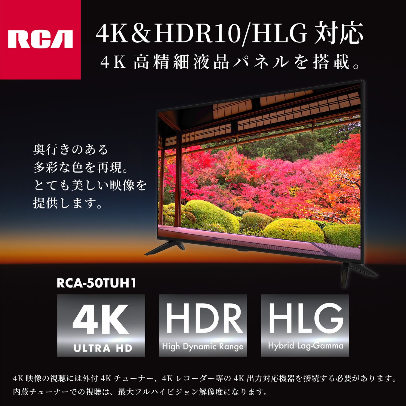 RCA新商品 4K-HDR対応テレビ「RCA-50TUH1」「RCA-43TUH1」発売のお知らせ