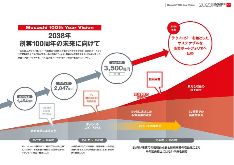 ステークホルダーの皆さまから頂戴した2022年度版の統合報告書への貴重なフィードバックを元に、今年度は多くのポイントを改善しました。特に創業100周年となる2038年に向けては、過去の中期経営計画の振り返りや現在の中期経営計画の全体像を踏まえたうえで、私たちが「目指したい未来」を具体化しました。