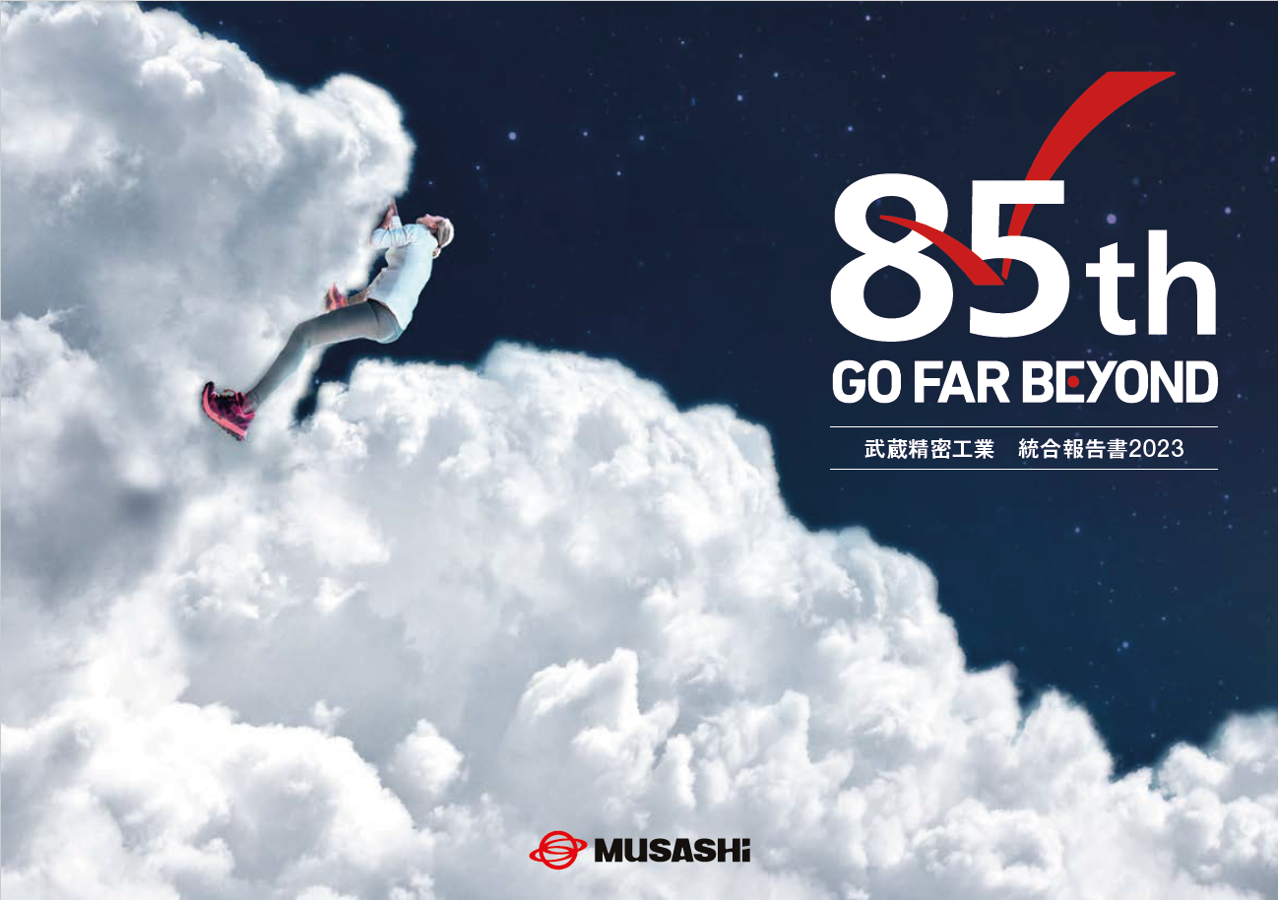 今年度の統合報告書では、創業100周年となる2038年に向けて過去の中期経営計画の振り返りや現在の中期経営計画の全体像を踏まえたうえで、ムサシ100年ビジョン「Go Far Beyond !枠を壊し冒険へ出かけよう!」の実現に向けた開示を拡充しました。コア事業、新規事業における事業環境分析や成長戦略の全体像をお示しするとともに、各事業における具体的な取り組みについてご説明しています。
