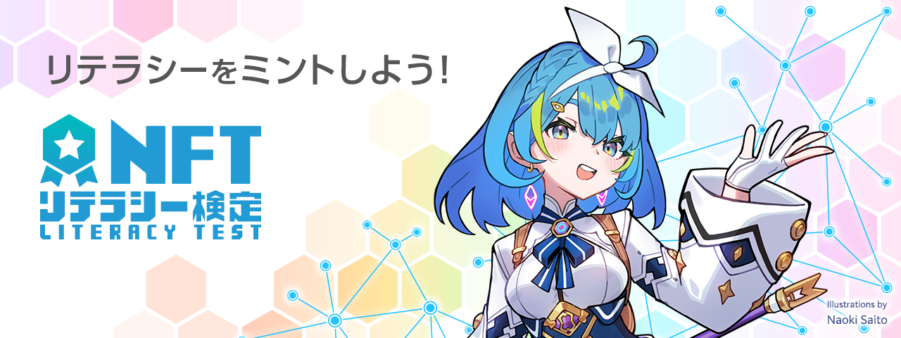 「NFTリテラシー検定」は、NFTとNFTに必要なウォレットに関するルールを学習、詐欺事例を知り、検定方式のテストを受けることが出来るサービスです。6つのテーマに沿った全16問の選択問題を全て正解すると、譲渡不可のデジタル証明として、さいとうなおき氏がデザインした「合格証NFT」を基本無料 ※4 でミントすることが出来ます。リテラシー検定を通して詐欺被害を減らすこと、また利用者のリテラシーをブロックチェーン上で可視化することが狙いです。