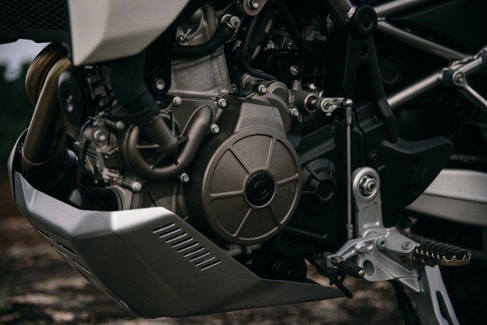 トゥアレグに搭載される660エンジンは、9,250rpmで80馬力の最高出力、最大トルクは70Nm/6,500rpmです。これはRS 660の8,500rpmに比べて大幅に低い回転数で得られ、約3,000rpmで最大トルクの75%に達し、4,500rpmで最大トルクの85%に達します。インジェクションシステムには、左右で長さの異なるインテークダクトを搭載した直径48mmのスロットルボディを2つ装備し、高速~中速域での性能配分を最適化します。 これにより大排気量エンジンに引けを取らないパフォーマンスを発揮する事も可能となりました。