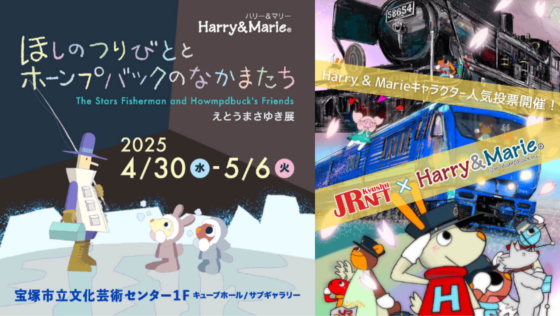 キャラクター Harry&Marie(ハリー&マリー)を運営するハリマ紙器印刷工業株式会社(兵庫県加西市、代表取締役:藤中 亮太、以下「ハリマ紙器印刷工業」)は、宝塚市立文化芸術センターにて 第6回Harry&Marie展覧会でキャラクター人気投票を開催します。本イベントは、Web3スタートアップのConnectiv株式会社(東京都千代田区、代表取締役:石井 裕希、以下「Connectiv」)の運営するイベントプラットフォーム『Snapshot』にて開催されます。また、九州旅客鉄道株式会社(福岡県福岡市、代表取締役:古宮 洋二、以下「九州旅客鉄道」)の運営するNFT販売プラットフォーム「JR九州NFT」と連動した企画となっております。