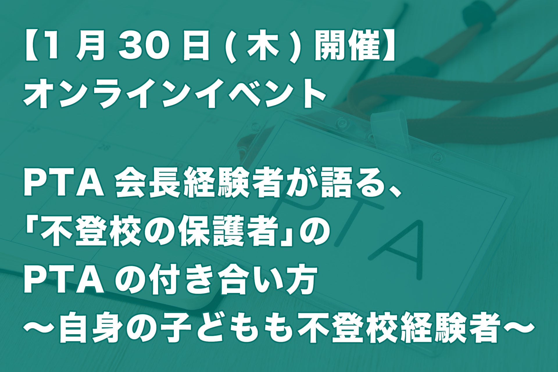 【1月30日(木)開催!】オンラインイベント「PTA会長経験者が語る、『不登校の保護者』のPTAの付き合い方〜自身の子どもも不登校経験者」