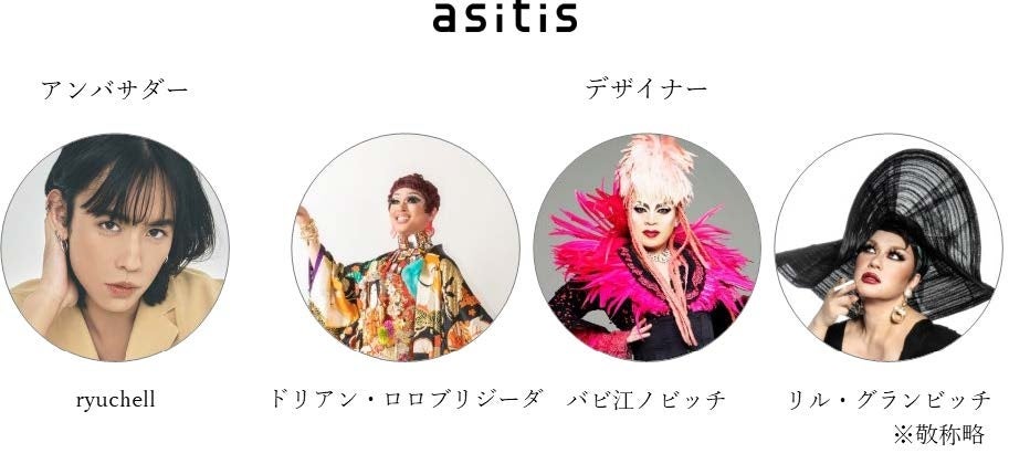 ブランドの第一弾として、ジェンダーに縛られず自由な性表現を体現するタレントのryuchellさんをアンバサダーに迎え、各種メディアやイベントでも活躍中のドラァグクィーン、ドリアン・ロロブリジーダさん、バビ江ノビッチさん、リル・グランビッチさんがデザインした3つのコレクションアイテムを、各1,000点限定で販売致します。同プロジェクトでは、販売点数に応じ、デジタルコミュニティの設置や、ARアプリケーションの提供、売上の寄付などが提供される予定です。