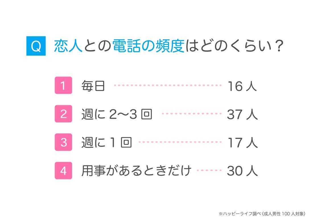 男性も同じく、週に2〜3回か用事があるときだけ恋人に電話する率が高いです。