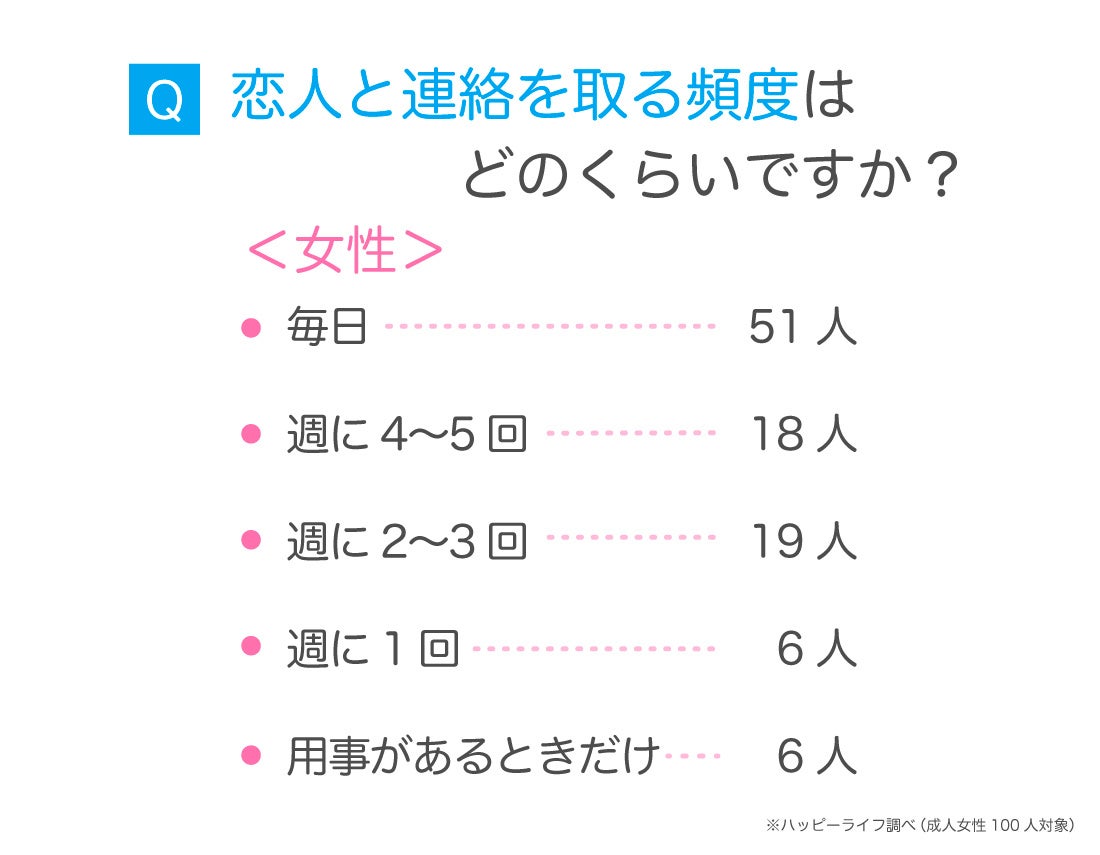 アンケート調査によると、半数の女性は恋人と毎日連絡を取りたいと思っているようです。